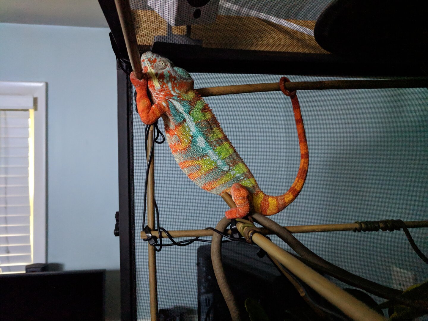 - Handling - How often do you handle your chameleon? Rarely, he does try to run over and climb on my hands when I'm I'm the cage (wont be in the cage often now, was just getting everything situated)