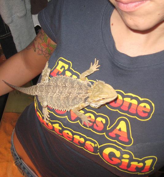 That's my bearded dragon, Blaise. The second pic is my ferocious pit (LOL), Miiza. Boy what a difference from dealing with my beardy to my new friend the chameleon