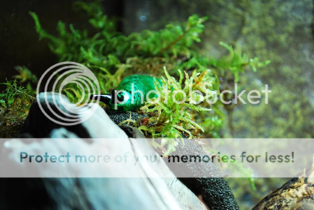 So here are some photos of the viv (24Lx18Dx18H Exo Terra)! Please please please give me your feedback and ANY suggestions that you may have, especially lighting! I have read a billion different views on the "most appropriate" lighting used. I have removed the coconut hut (it was for the darts) and plan on drying out some leaves to throw in as some leaf litter.