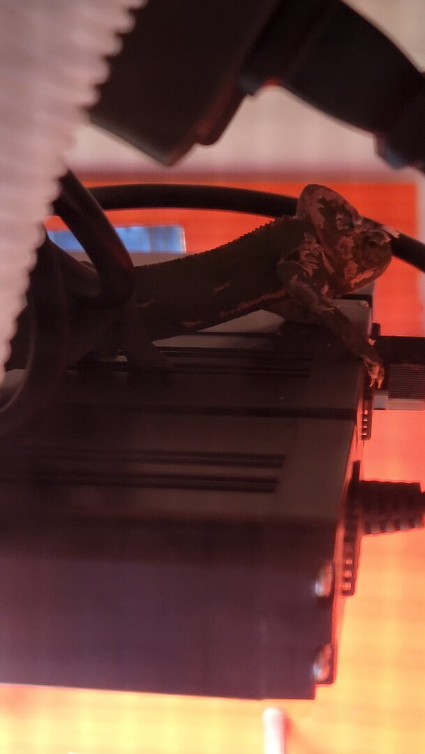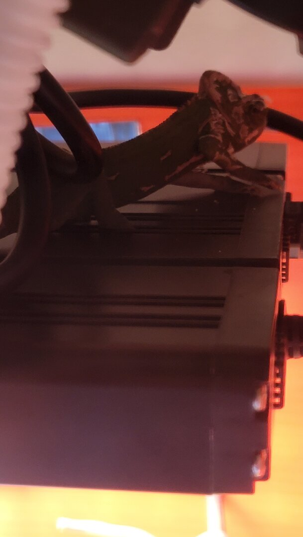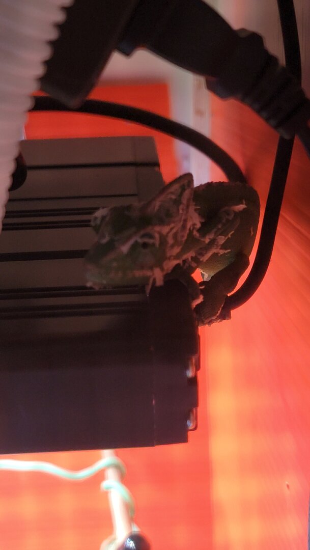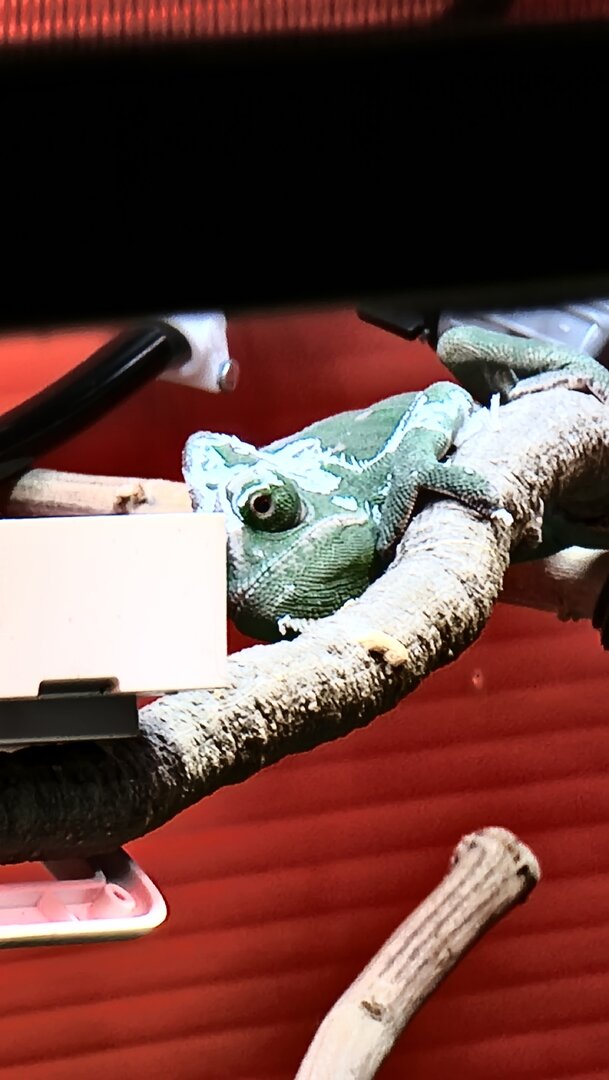 My Veil Cameleon not eating and hanging above light after enclosure change.