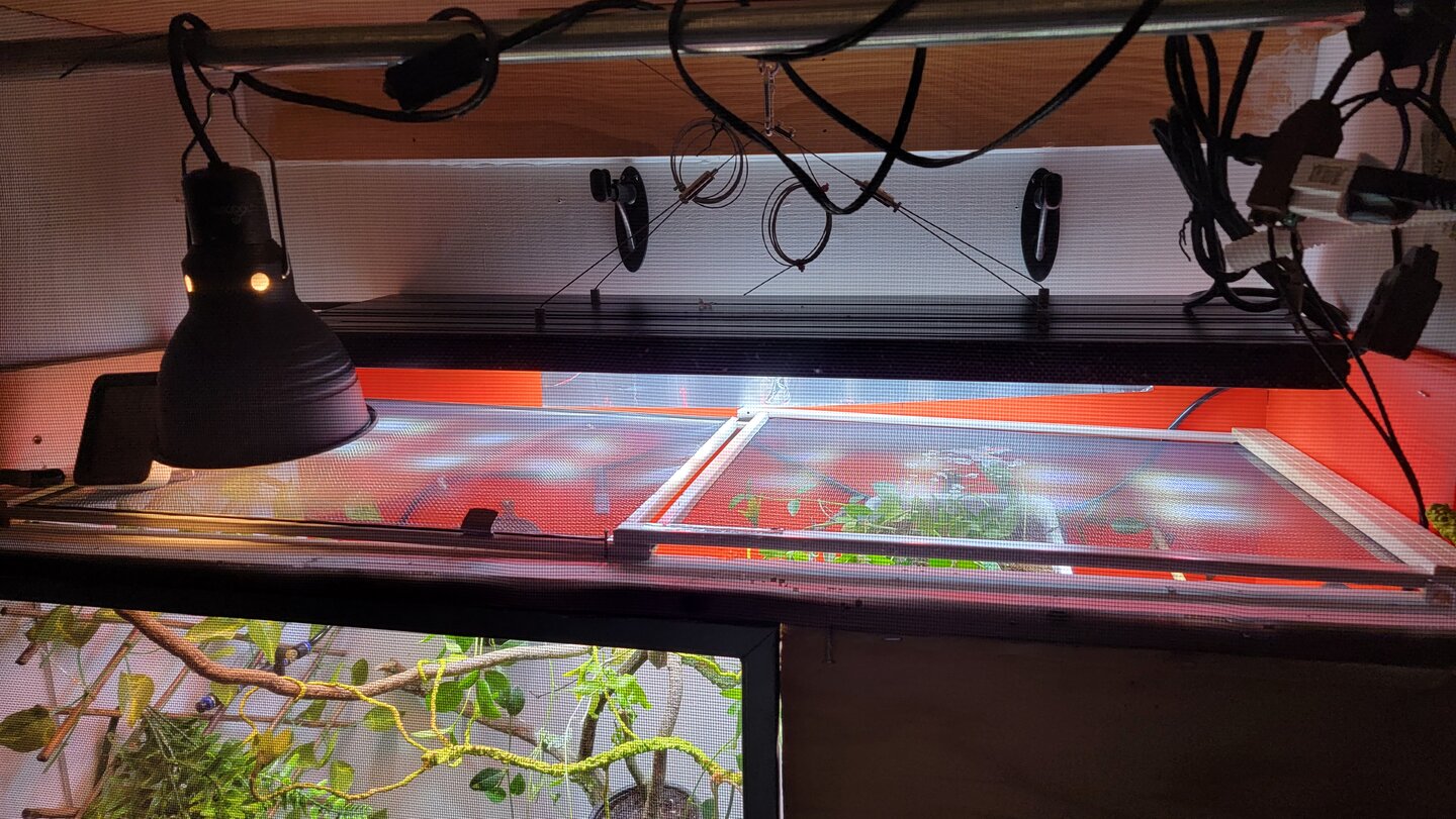 You said…”Since I built it into a closet, I cannot get the light outside the enclosure. I posted 3 pictures from today”..then maybe you can put screen between the lights and her so she can be safe from burns, etc?