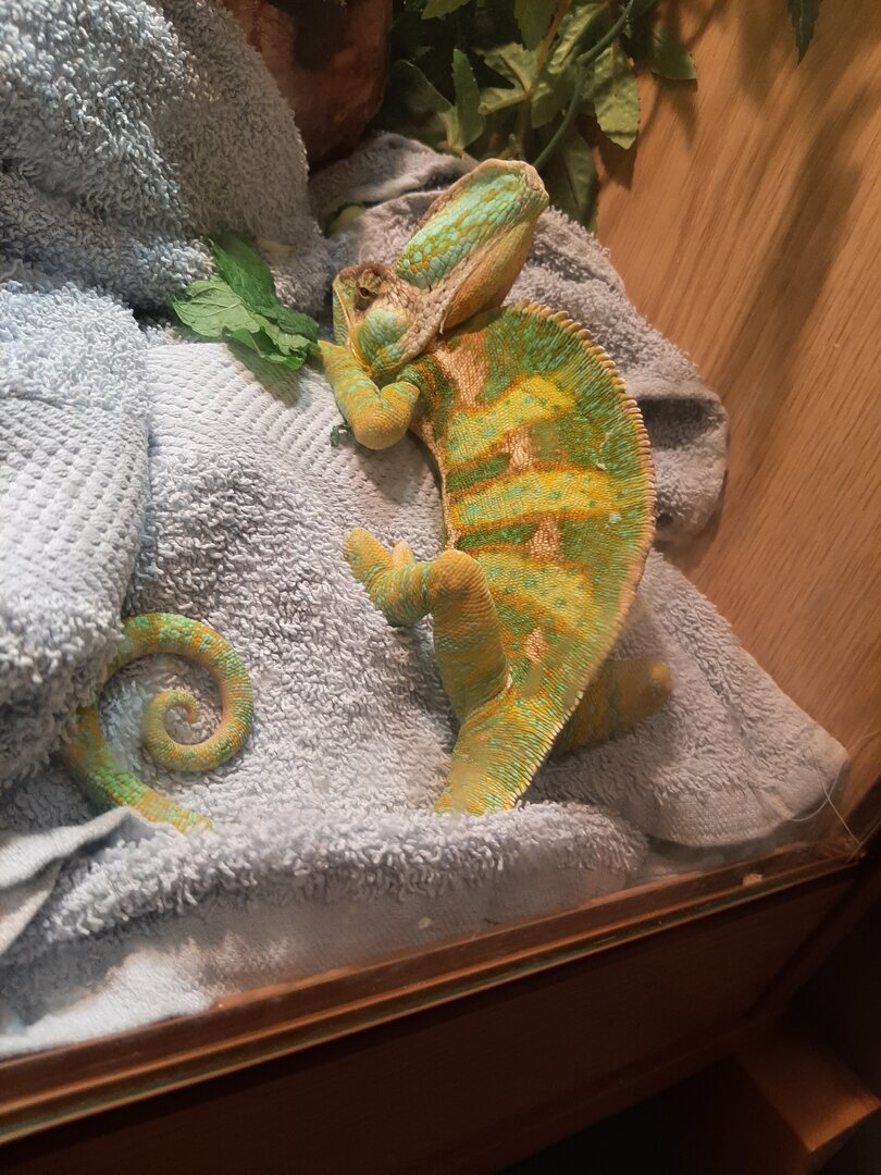 Veiled chameleon, male, 3 years old, been in my care since he was a few weeks old (we bought him in a pet store he was tiny)