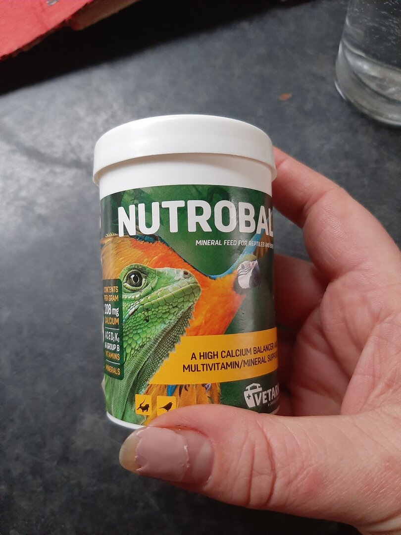 We feed him adult locust 3/4 a day I dust them normaly twice a week with said calcium powder (please see attached file)