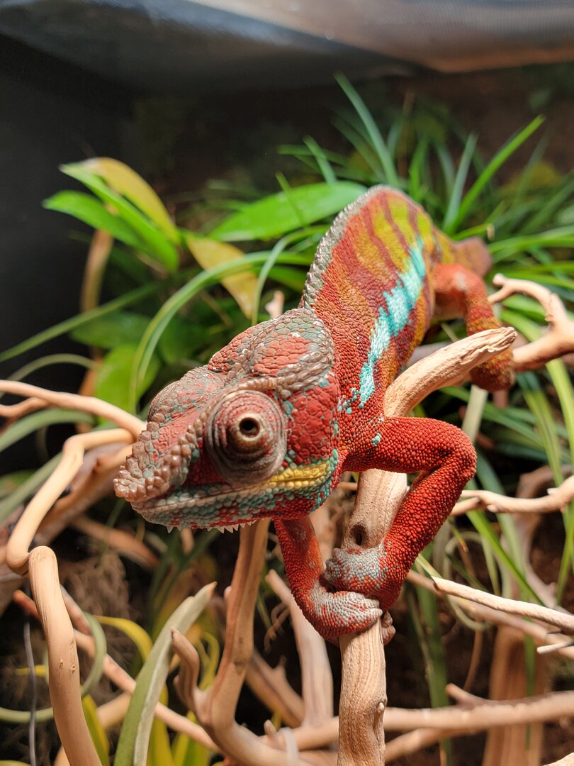 His temperament is always very relaxed and that doesn't seem to have changed - although he is more reluctant to take food when hand fed, of which has normally been his preferred method of feeding.