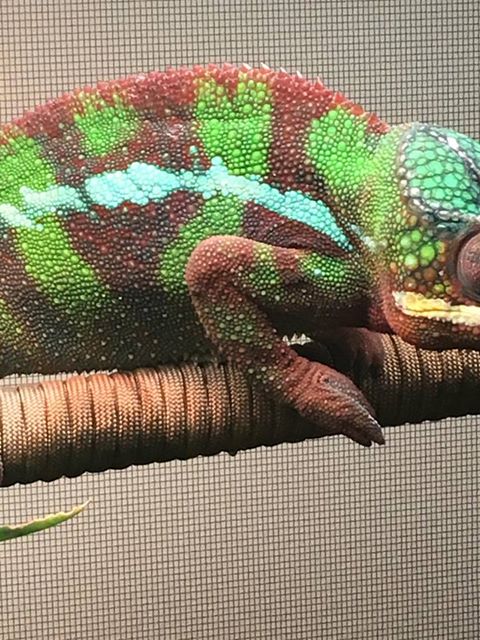He adopted the Panther last spring and it is around 1 year old. My advice was to put a little neosporine on the area and watch for any changes in the area's size, seepage, changes in the chams activity level, eating habits, strength, weight and poop. I just don't think a trip to the vet is necessary.