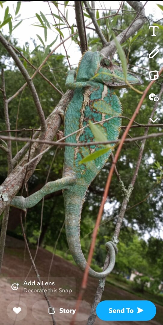 Veiled Chameleon, 5 years old, had him since he was 4 inches long in 2019.