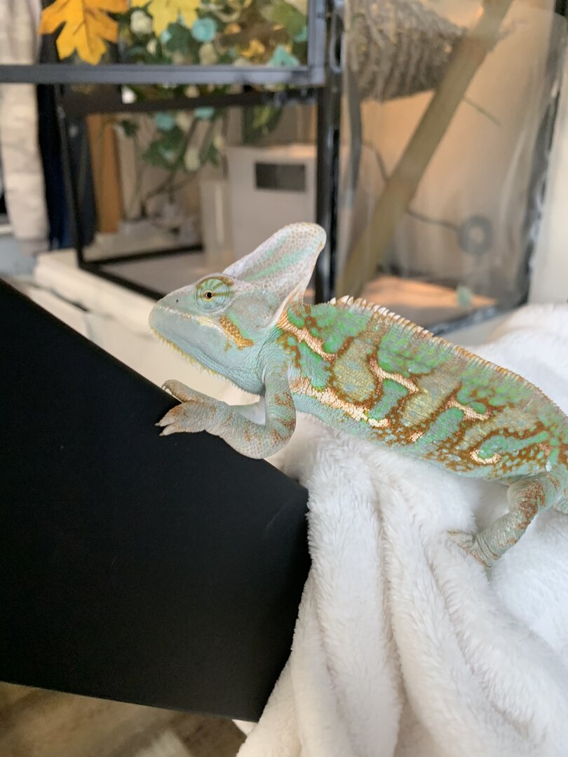 male veiled chameleon he is about 1 year old he has been in my care for about 8 months