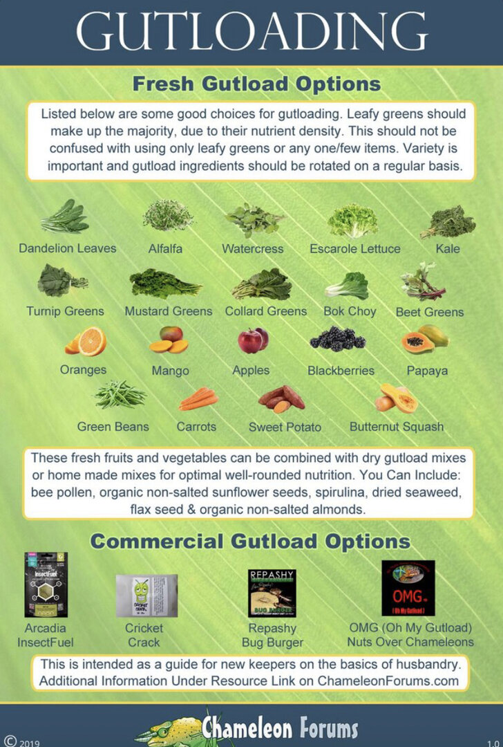 i feed my chameleon 7 crickets every other day i feed him horn worms 2 times a week and as a treat i feed him 2 wax worms a month 5 food items every other day.