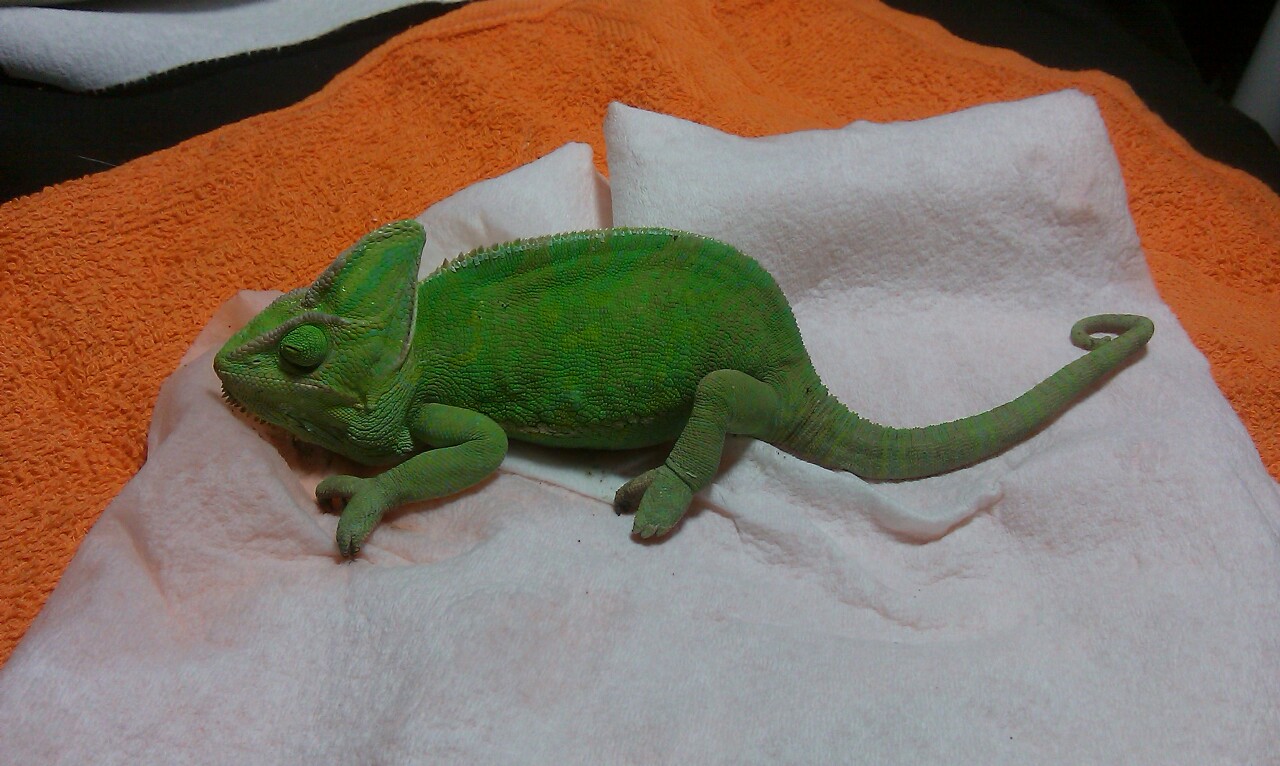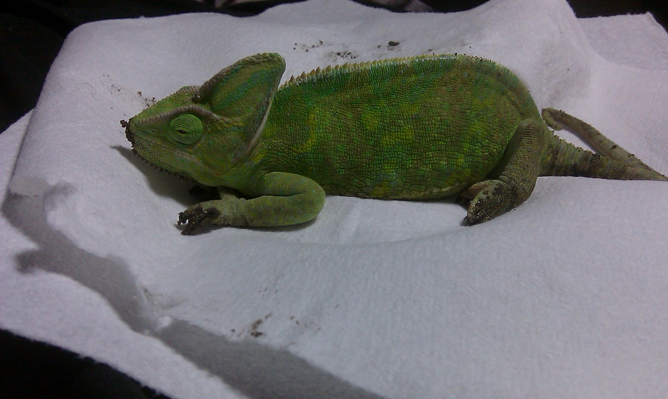 She does not have MDB (according to the VET and the XRAYs that she took on Tuesday) I think she is too weak to lay the eggs, which is why i started on the oxy. I have been searching the internet to see what i can do to make her more comfortable and help her lay her eggs, but without much help. There is quite a bit of people out there with "egg bound" chams, but nothing past the fact that they have it. No assistance on how to take care of them or what to do DURING the process. So far, since the picture, i have given her some drops of water to absorb and the calcium along with 3 shots of oxy. she hasnt really done much moving, but she does move occationally. I will keep posting every few hours if anything happens (or not). Thank you so much for your help and assistance! (I have attached a picture of her before her medicines)