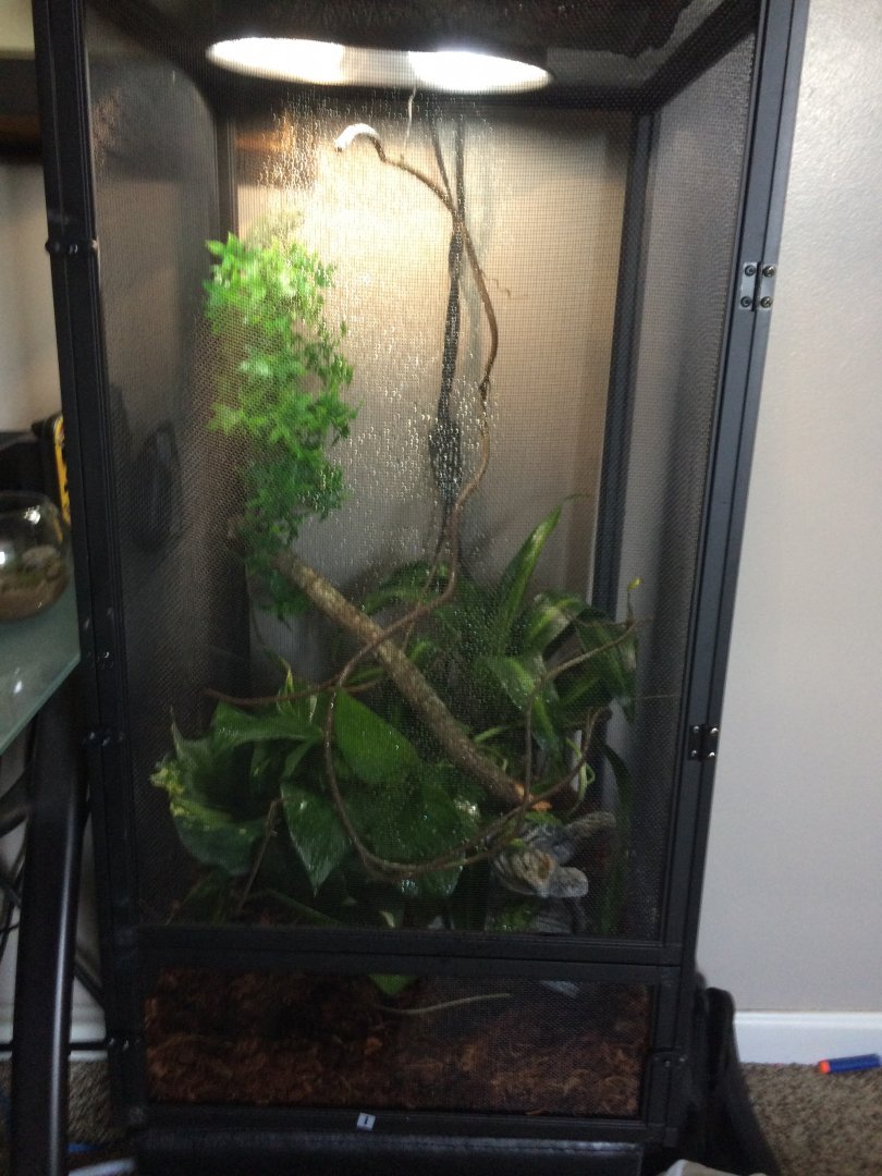 Hi. I’m new here and to Cham care in general about a week ago I rescued a Cham from pet smart. He was fine when he got home but now is making sneezing noises but is not clicking or crunching when she breaths. I know I should have gone to a broader but didn’t want him staying in the 6 inch cage they had 2 in. She’s still vary little (not sure how old ) I spray her cage 4 times a day it’s a screen change and is a 16 by about three feet up. I don’t thinks it’s an uri but it might be salt depot in its nose. Any help with care would be awsome