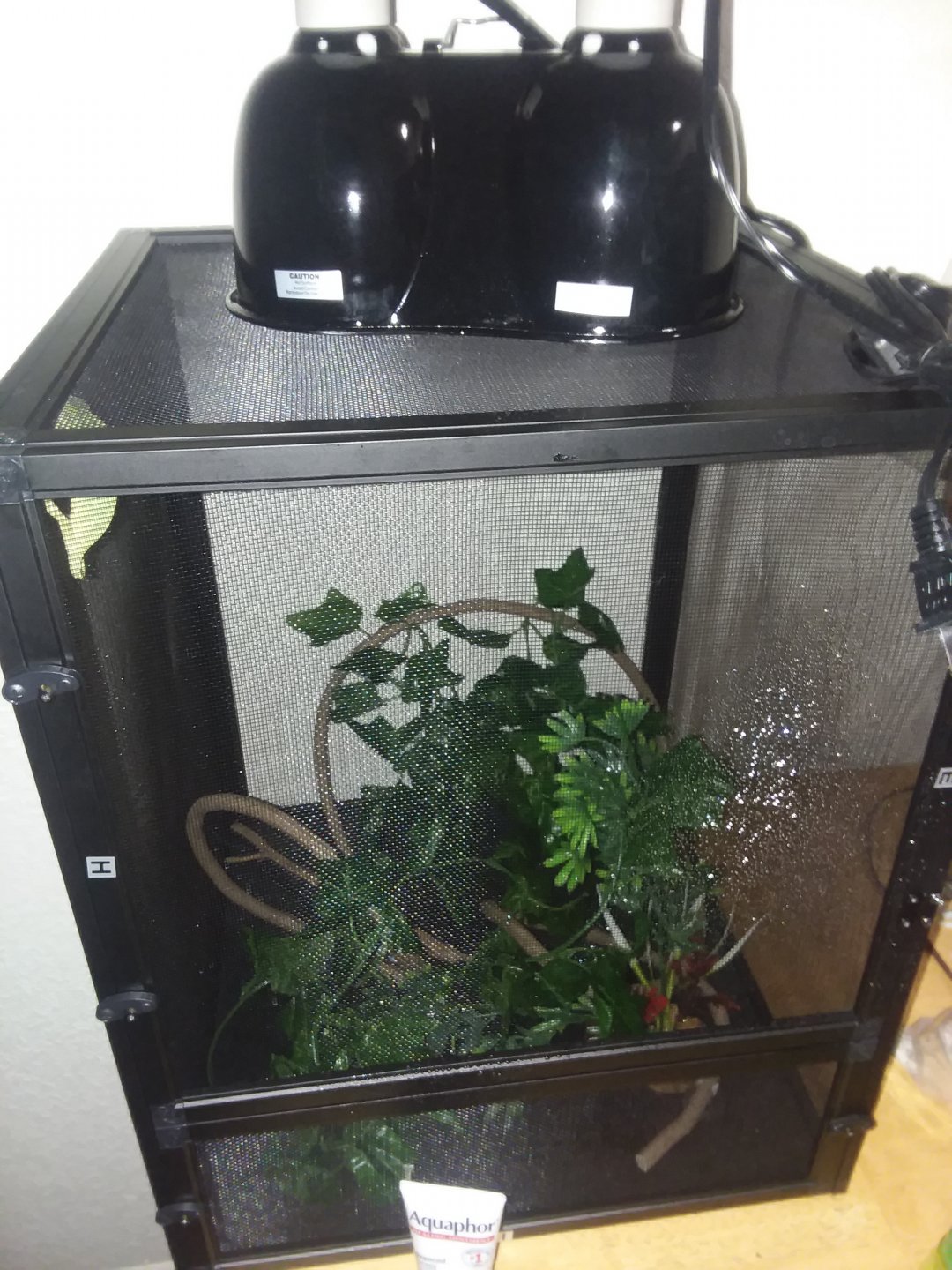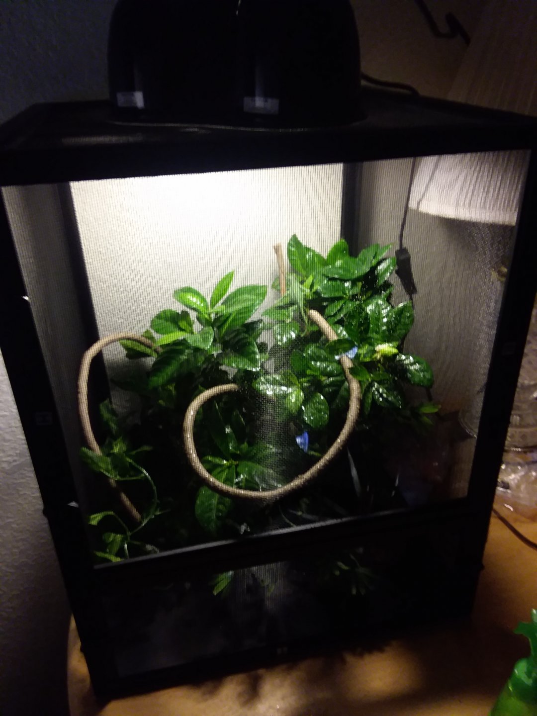 First off, that cage is extremely small. If you did proper research before purchasing anything, you would have known to start with a taller cage and would have to upgrade to an even bigger cage when the chameleon is around 8-9 months old. With that set up youll need to buy a new cage in acouple months since you veiled will out grow that one fast. Adult veileds need a cage ATLEAST 48 inches tall and 24 inches wide.