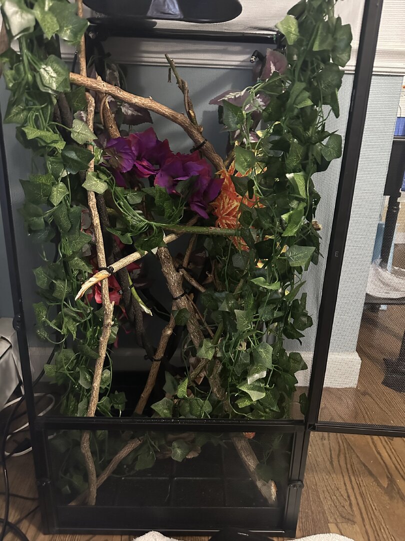 And yeah I moved some stuff and added horizontalYou will need to make a few changes.... Read through this and it will walk you through total set up... https://chameleonacademy.com/chameleon-husbandry-program-getting-started-with-chameleons/