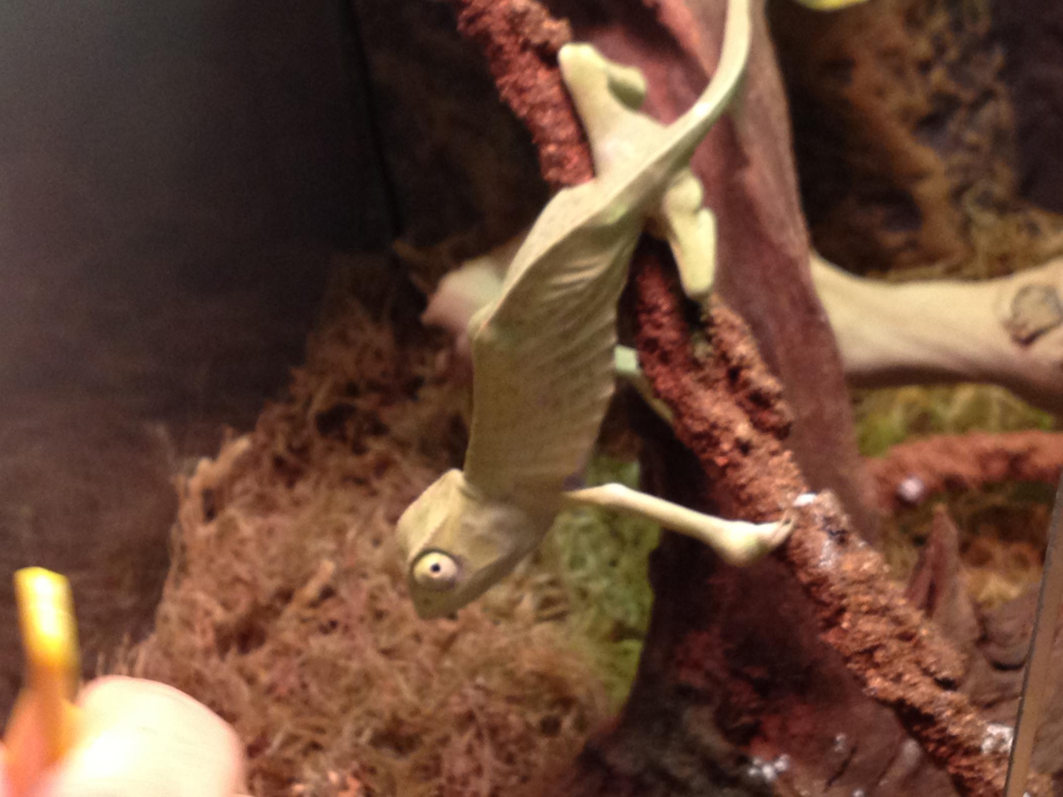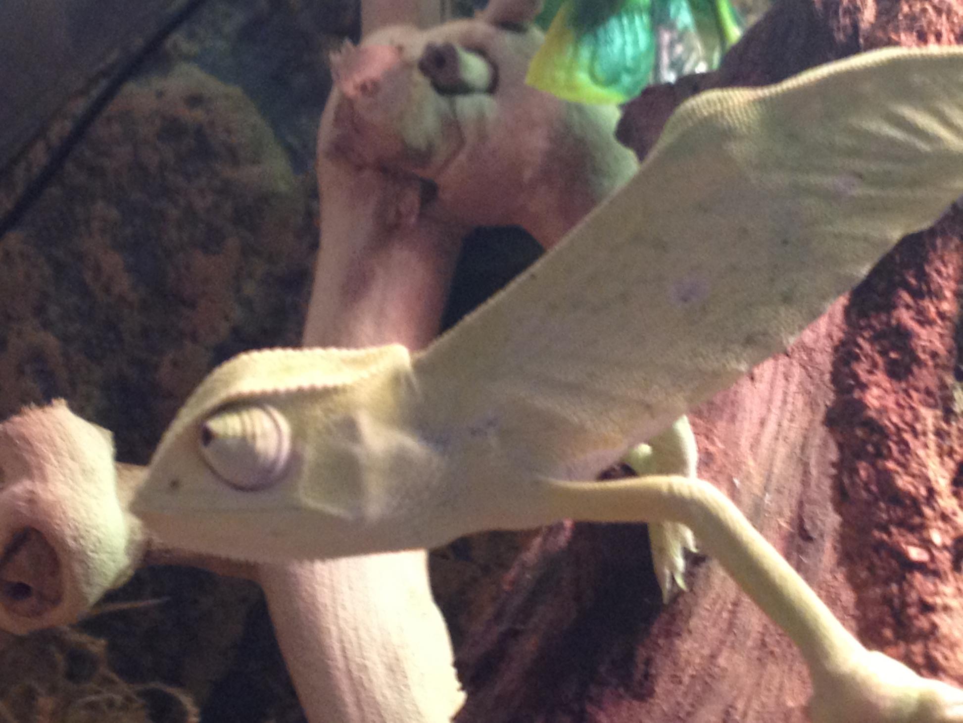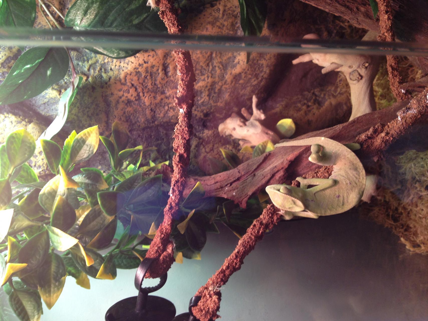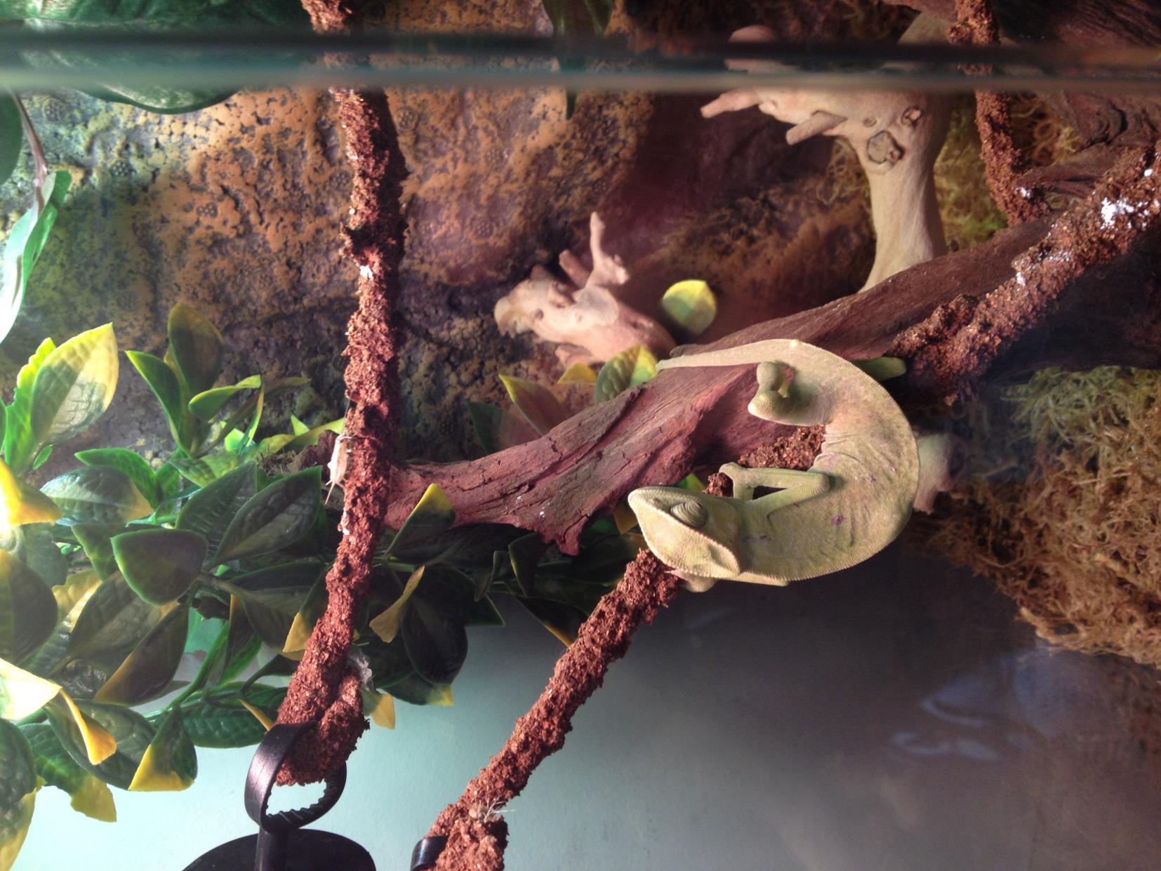Hey. My name is Reggie I am a mgr of a pet store and I know a lot about stuff but I was just given a Veil Chameleon form a lady that had no idea what she was doing. I dont know how old (what I think is a he) is but she had him for 2 months and its a baby so Im guessing like 3-4 months. The "cage" he was in was tuck taped together and lets just say busted. I know he did not have a UVB light and I dont know how he could have been in the right temp. There was no support on the ground and the plastic leaves were stapled to the wood that was again tuck taped. When I asked if he had been getting calcium she ask why he needed it.....anyways he must have fallen and now his leg is broken. He climbs around just fine but it dangles around and he does not use it to walk. I will be getting a bigger set up tomorrow when it comes in on our delivery but I have a Exo Terra tall tank with coconut fiber pith and on top of that I have moss. I have vines securely attached to the sides in a zig zag kind of way a 60w repto sun light and a 13w uvb light going. the temp is around 92f. I also have a zoo med foger hooked up so I can give him some humidity but Im unsure what it needs to be at exactly. When I got him home I got him settled I though he might be hungry so I feed him 1 cricket he did not seam that in to it so I tried a meal worm and he like really went for it so I gave him like 8-10 small meal worms...Is that ok.....wow I kind of really went on any way I had planned on doing me research before I got a chameleon but I could not let that guy leave my store with her.....can anyone help?