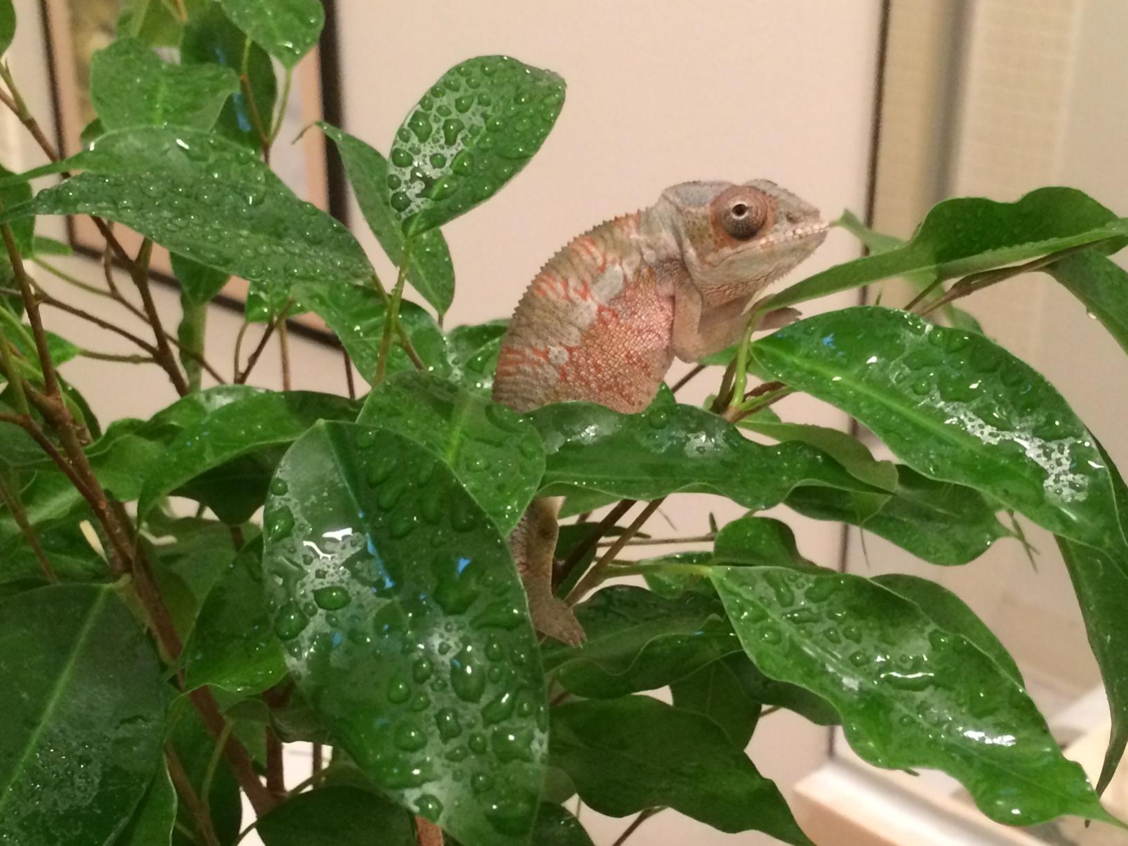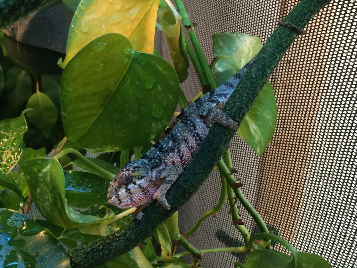 So, after years of waiting for the right time, I finally bought another chameleon - an Ambilobe panther chameleon from Kammerflage Kreations. Ambrose, as I'm calling him, is about 4 months old now, and absolutely gorgeous! It was love at first sight.