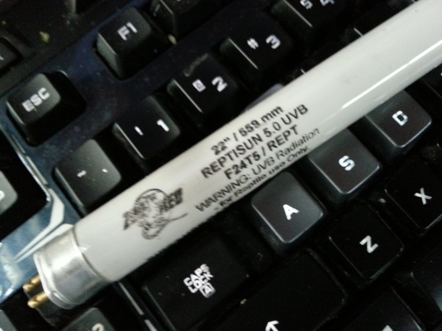 You showed pictures of the fixtures, not the bulbs. Look for the fine print on the actual light bulb. Here's a picture of the printing on a ZooMed UVB light (5% UVB).