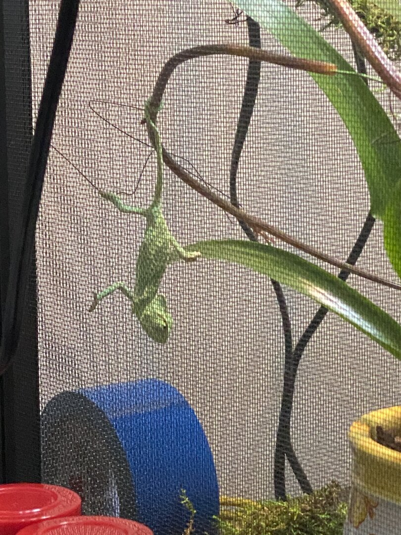 - Cage Info: 18x18x36 screen with metal frame, bioactive live plants coming from TheBioDude. But plastics climbing vine and leafy stuff for now, preserved moss and moss vine