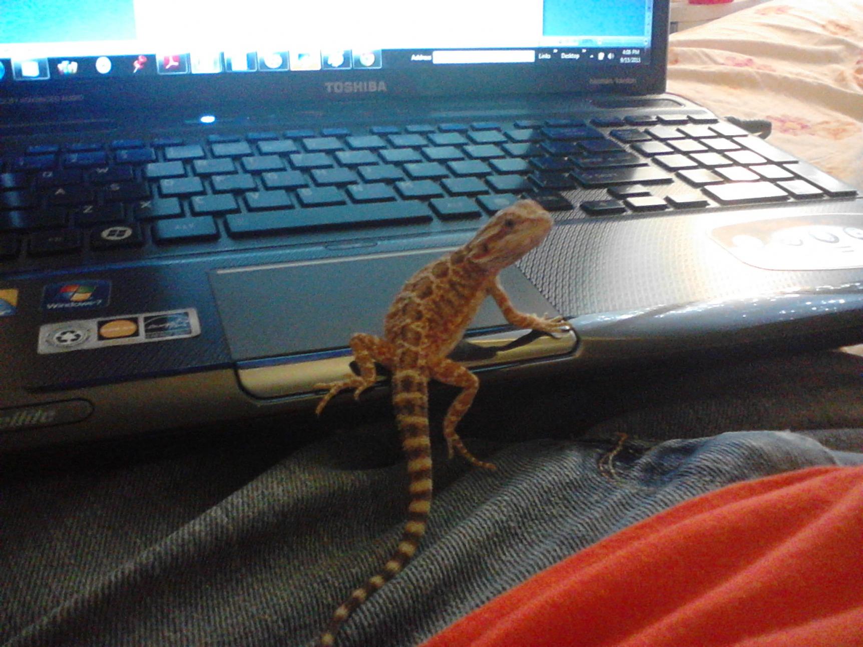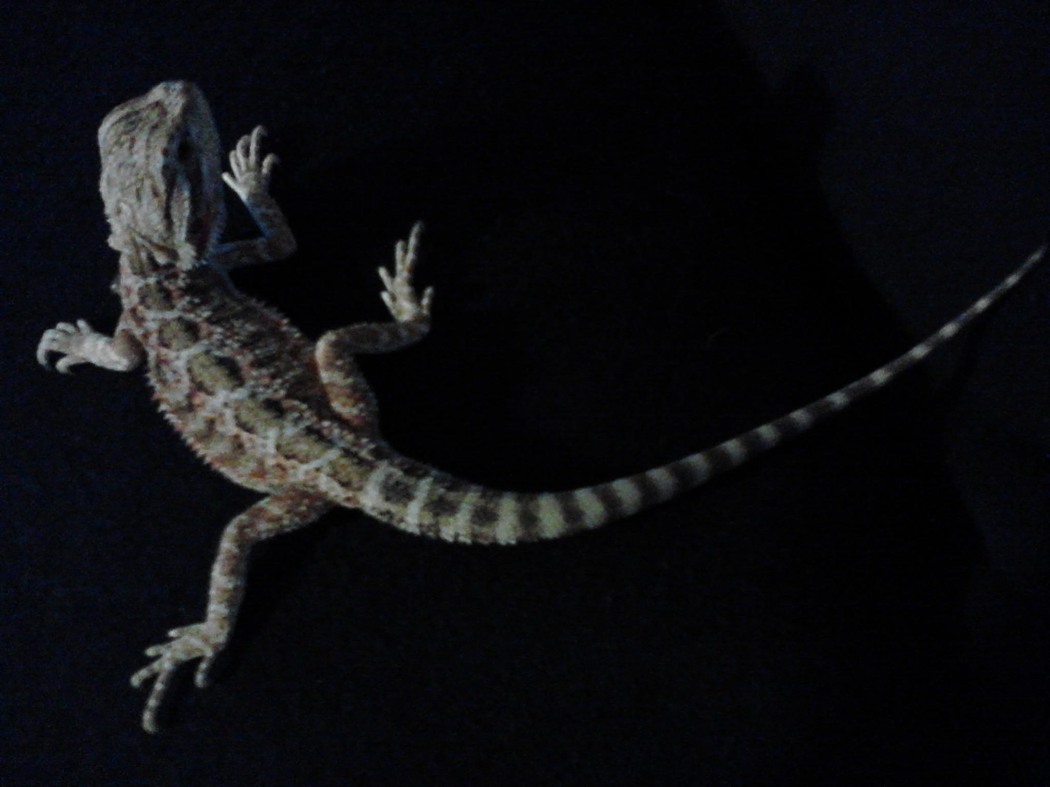 I just got a new bearded dragon from a local breeder. He/she is about 9 weeks old and close to 7 inches long including the tail. These pictures don't do justice to his bright orange coloring, especially when I take him outside in the sun. He is actually shedding right now, so I will post more pictures once he finishes. I can already see his oranges coming in even brighter.
