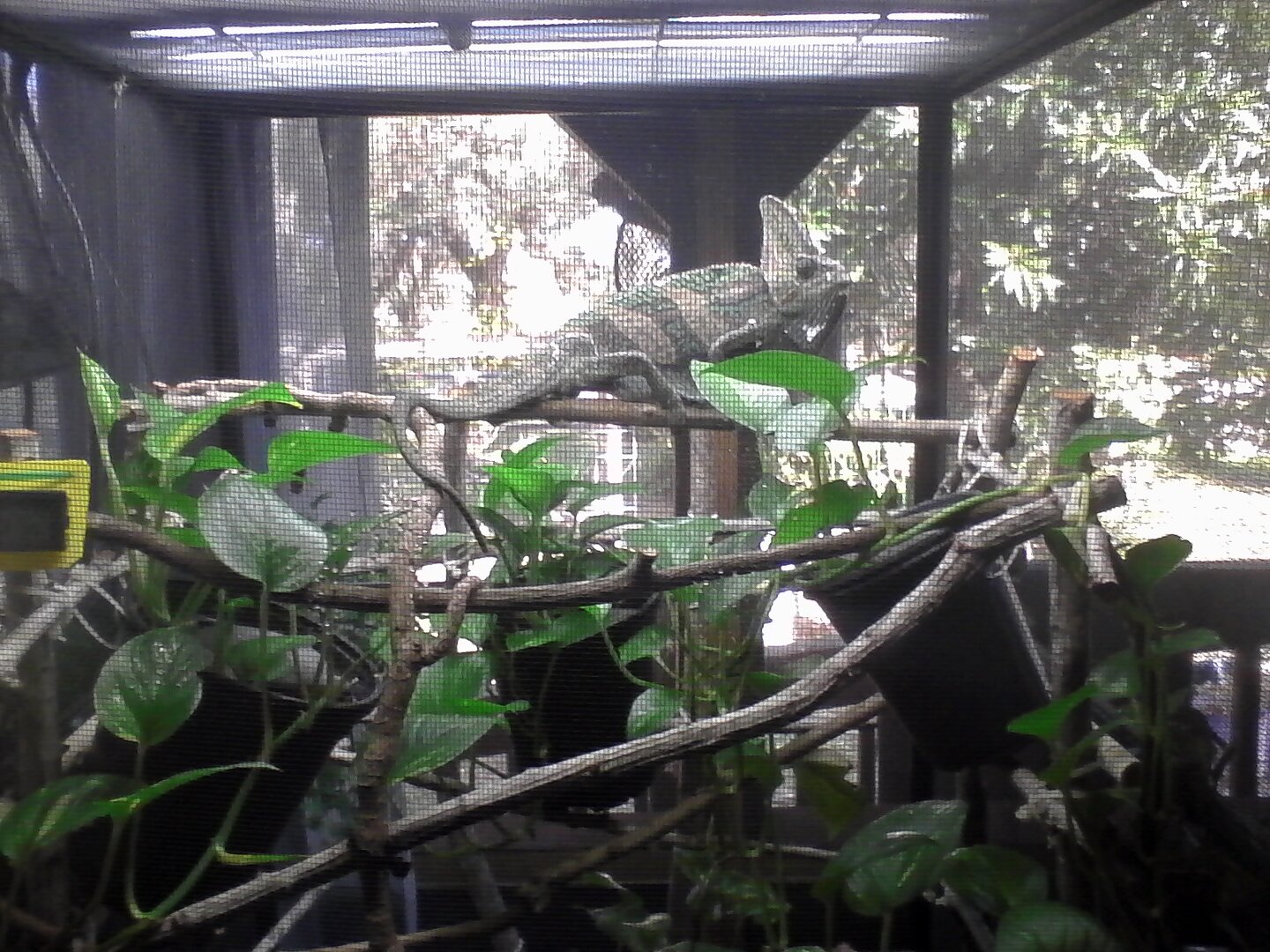 I have 3 decently established pothos, and many pothos babies growing in small planters at bottom. A Swiss cheese plant. A well developed spider plant, with many "spider babies" hanging off, a small money tree (15inches) and a dwarf umbrella, which doesn't do much but is starting to grow quite nicely. Plus a bunch of baby spider plants that I planted in small pots hanging on outside of cage... plus one more pothos (good size) waiting on rocks to go on top soil. Oh and a prayer plant too! Which doesn't do much for coverage for him but takes up a nice corner on bottom
