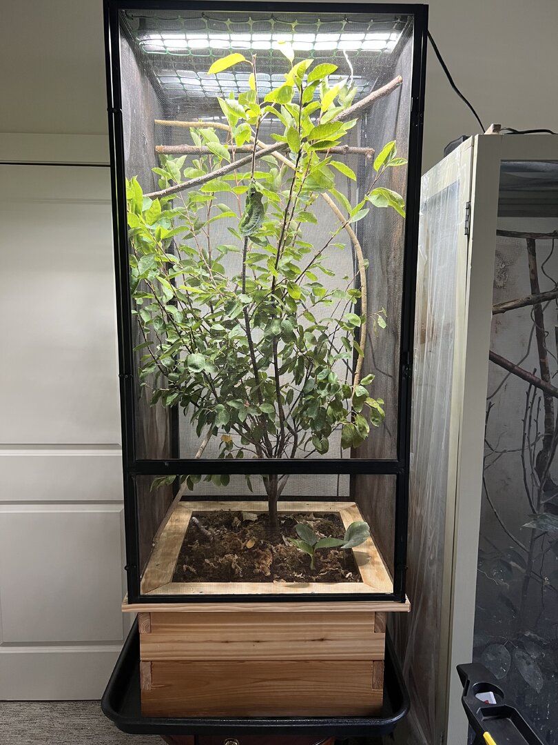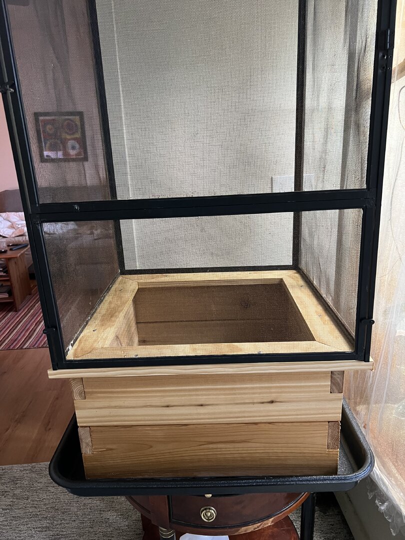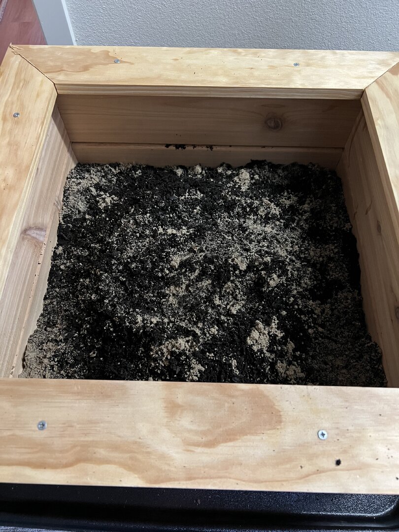 Which unfortunately was only 22"x22" in size. So I bought some 1x4 pine to make the frame on top of it, which I cut to make the frame and then glued and screwed down to the planter. For the layers of soil I used this blog from Cyberlocc. I may still add the leaf litter and isopods/springtails to make it bioactive. The last pic shows the final product with Vincent, my quad gracilior in there. I hope he likes it!