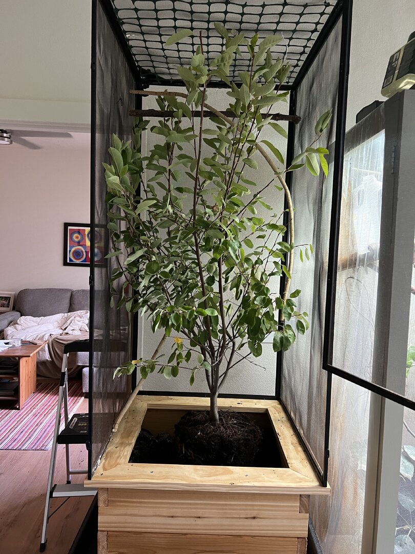 I haven't posted here in quite some time, but I want to share some pics of my new cage build. I did some research here on the forums to get some ideas. It's a regular 2'x2'x4' to replace an older larger cage that has seen better days. I like to place the cage on top of a planter so that it's an effectively larger cage.
