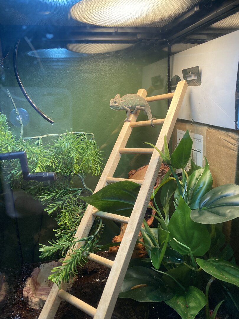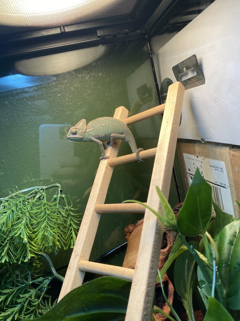 I don't think the ladder is so bad, but the chams viv needs branches and vines vertical & horizontal to climb on, if the ladder is in with all that, should be ok