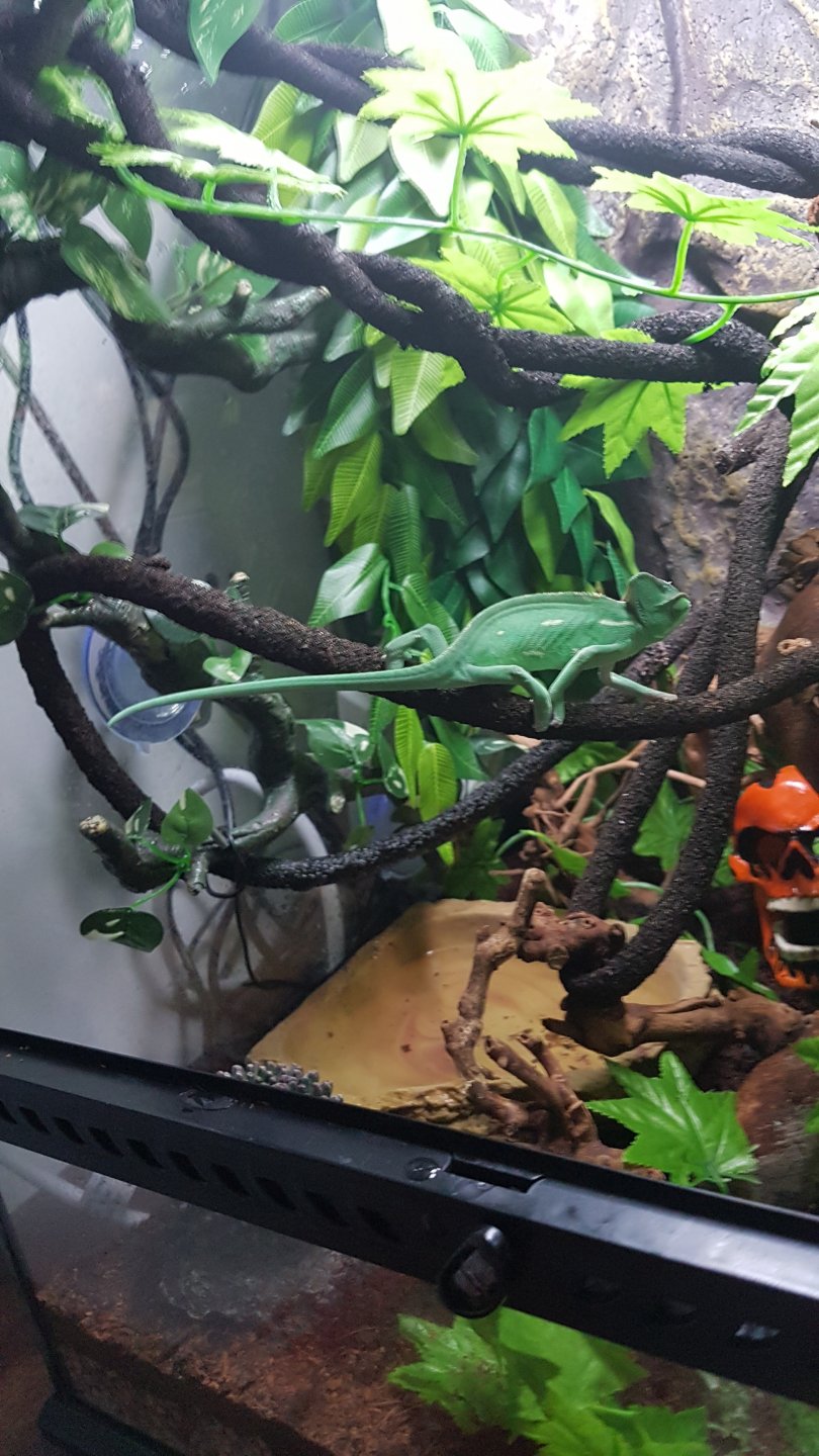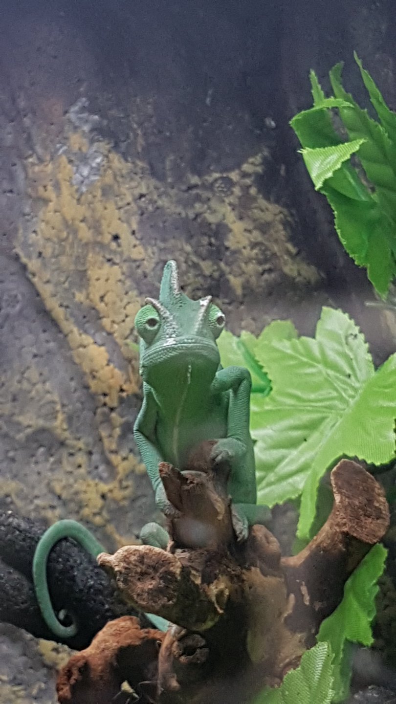 I'm a new cham (veiled/yemen) keeper had him for 2 weeks now all seems to be going well, he is growing very fast and me the wife and son are enjoying his company and observing his interesting habits atleast we believe he is a male.