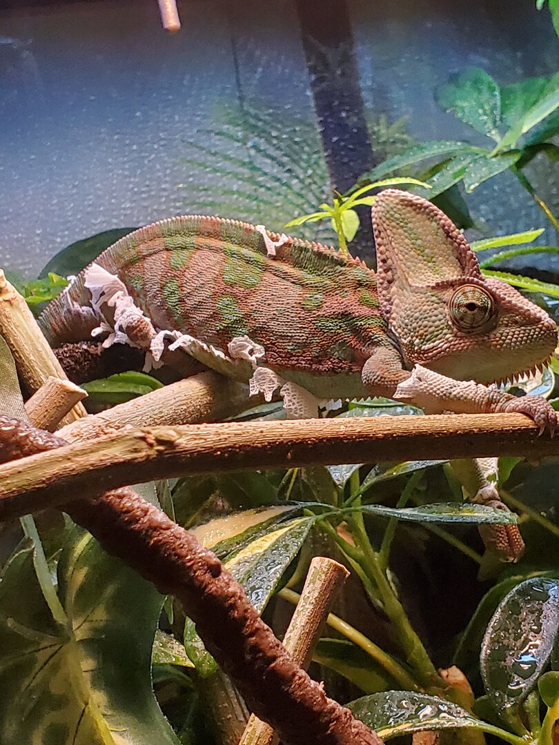 Hey guys names Robby purchased my first veiled cham (kimbo) about a week ago pretty sure I may have the first time owner scares for sure haha owned many reptiles pythons boas anoles and gekos etc.. in the past and very advid green thumb as i work in agriculture. Thought might as well combine 2 things i love reptiles and plants. Just wanted to chime in with the more experienced out there and see if im doing anything wrong what I can improve on and see if I just need to give him some more time as I know anoles stress easily and can be brown but not as sensitive as my cham I definitely know that. I have some books on the way will attach pictures of them hopefully there good did so much research before hand ill attach pics of my little guy kimbo as well. Just alittle concerned on his coloring and possibly him being to stressed or if its just him getting used to his environment and being wild caught. I've noticed him get some golden brown coloring and some white over the last few days his green has definitely gotten alittle brighter over the last few days as well.
