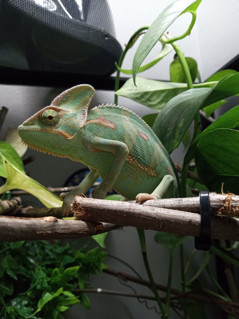 Hello all, tomorrow makes two weeks having my first cham. We got him from PetSmart, I believe he is between 4 and 5 months old.