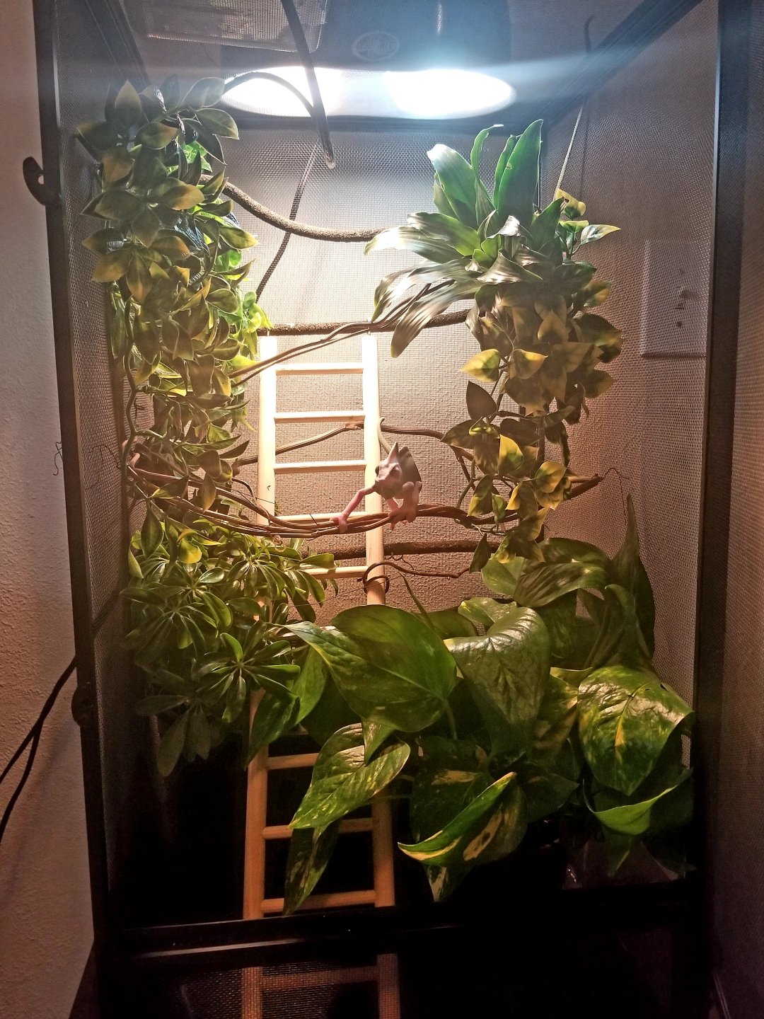 Not sure the age of my female, does anyone have a guess? Does she appear in good health or am I overlooking anything? Does my set up/husbandry seem okay? I have pothos on order to fill up the bottom but plan to leave it partially clear for a nest box. I love this girl, and want to make sure I do it right. I've done tons of research, but seems like this place is a wealth of knowledge, so anything you can offer is so appreciated!