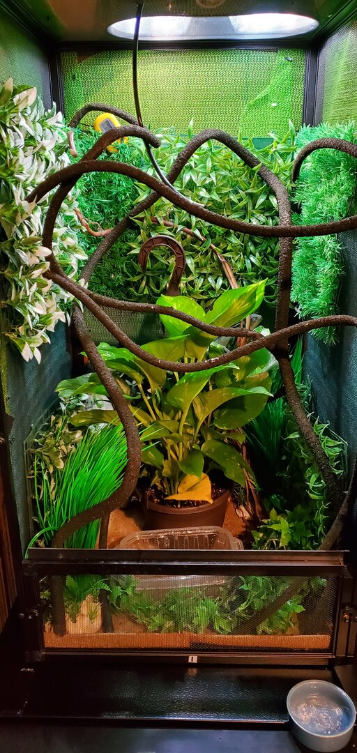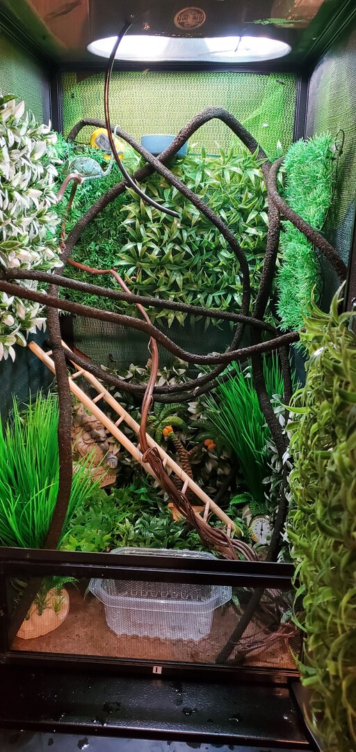 I'm very proud of his setup as I feel it mimics his natural habitat pretty well, so I hope I get food feedback on that!