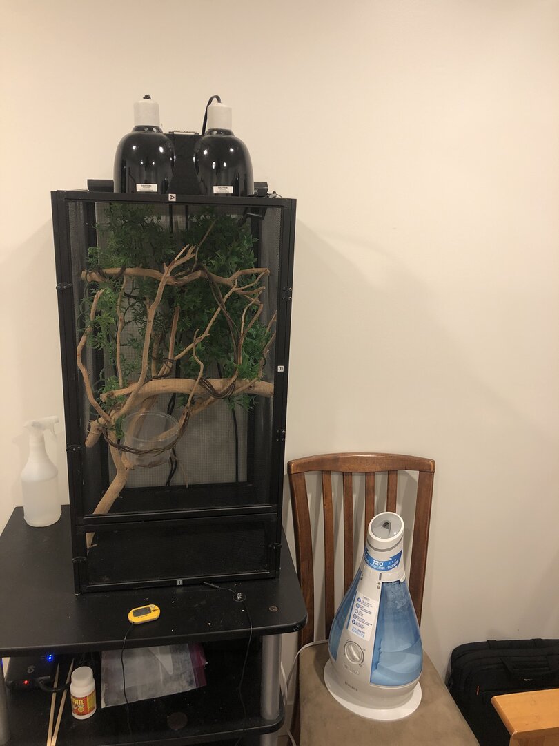 I have a single nozzle monsoon mister that sprays one area of the cage. From what I have read on this site, I inspect his poo and the white part is usually always nice and bright white which I have read means he’s getting plenty of water..?