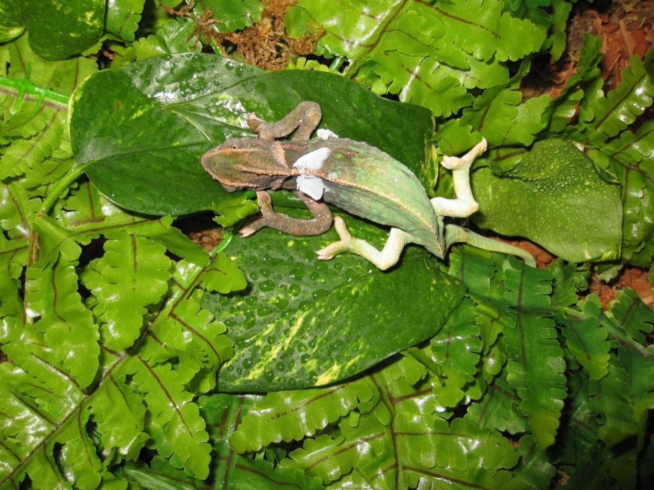 Hey guys my wife and I bought a (Edit) Veiled Chameleon on craigslist and needless to say the owner did not take good care of it. When we drove out to pick her up she was out of the cage in a rag on the desk. She was completely black and not moving and had pooped where she was lying. I took her and put her under the basking light for about 15 minutes where she came back to movement. We loaded her up and headed home. That was Sunday afternoon. Since then we removed the 75W bulbs from her Exo Terrarium hood (they were melting it). We added a 5.0 basking light and a 50W sun glow in cans, then for night we added 2 5W moon lights in the Exo Terra hood light. Since we got her she has not moved she just lies around looking stressed out. She did shed her skin, but I just want to know if this is normal when they shed or if she is stressed out? I figured she might try to stay recluse for a while with the shedding, but her not moving concerns me. Any help would be greatly appreciated. As for care we are feeding her crickets only 1 a day by hand and she has been taking water by mist and from a syringe from my wife. If you need more details please ask I just hate to see her suffer. Thanks