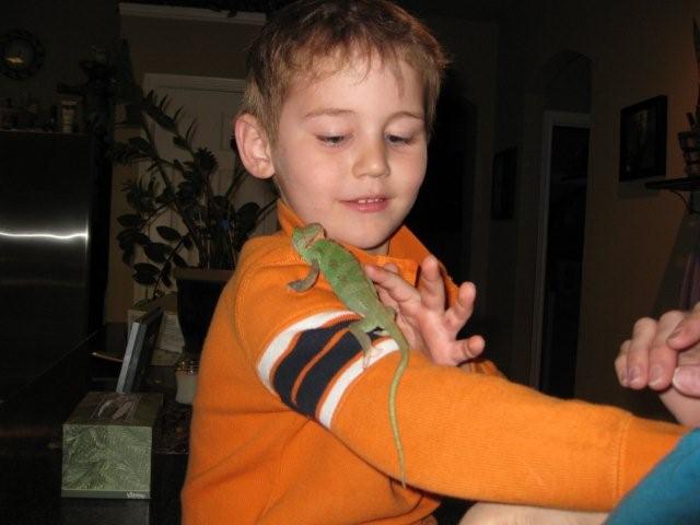 Thanks for all of the replies. After weeks of my wife hand feeding Cami she has fully recuperated. She was giving here daily injections of calcium with a syringe. She would lick it right from the end. She even took water through a syringe it was so neat to watch her drinking the water. Only thing now is she can't stand eating crickets. She only wants meal worms. She loves the huge ones too. She will eat 10 a day if you let her. She molted last week in 2 days total. When we got her it took her over a week to molt. I am guessing this is a sign of health. Attached are some pictures with Chami and my son Brayson. Thanks to everyone who replied to us.