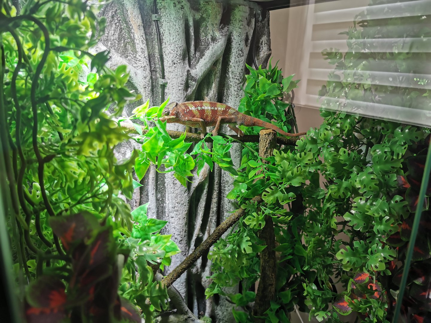 I have an 18 month old male panther chameleon we have had him since last Sunday and although he seems to have settled in well, (eating and finally pooping) today he is sitting on his branch and keeps opening his mouth really wide does this mean anything? Also he is eating around 6-10 crickets a day is this enough or too much? Any advice would be greatly appreciated
