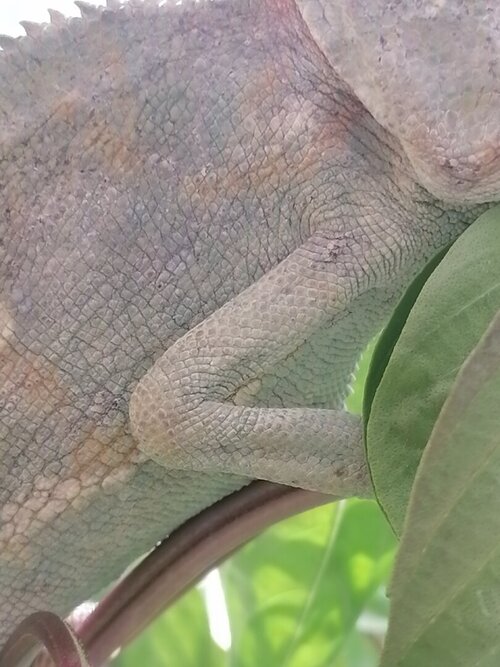 Hello there everyone i recenetly got a new male veiled chameleon and i need him checked out please he had poor husbandry before i got him but he's been eating and drinking plenty as soon as i got him i live in saudi arabia so there aren't many options available to me with feeders and supplements i'm feeding him mealworms at the moment and i plan on buying calci worms/black soldier fly larvae pretty soon he has a big enclosure with a lot of live plants and he's getting natural sunlight the only things of concern are his mouth which is slightly open from the front as well as a bit of blood on the tip of the lower jaw it doesn't look concerning but i thought i'd mention it also is his tongue which he cannot shoot far enough to get the worms i've seen chameleons shoot their tongue much further last thing is his poop which looks a little weird (i'll leave a picture of it down bellow) and that's about it