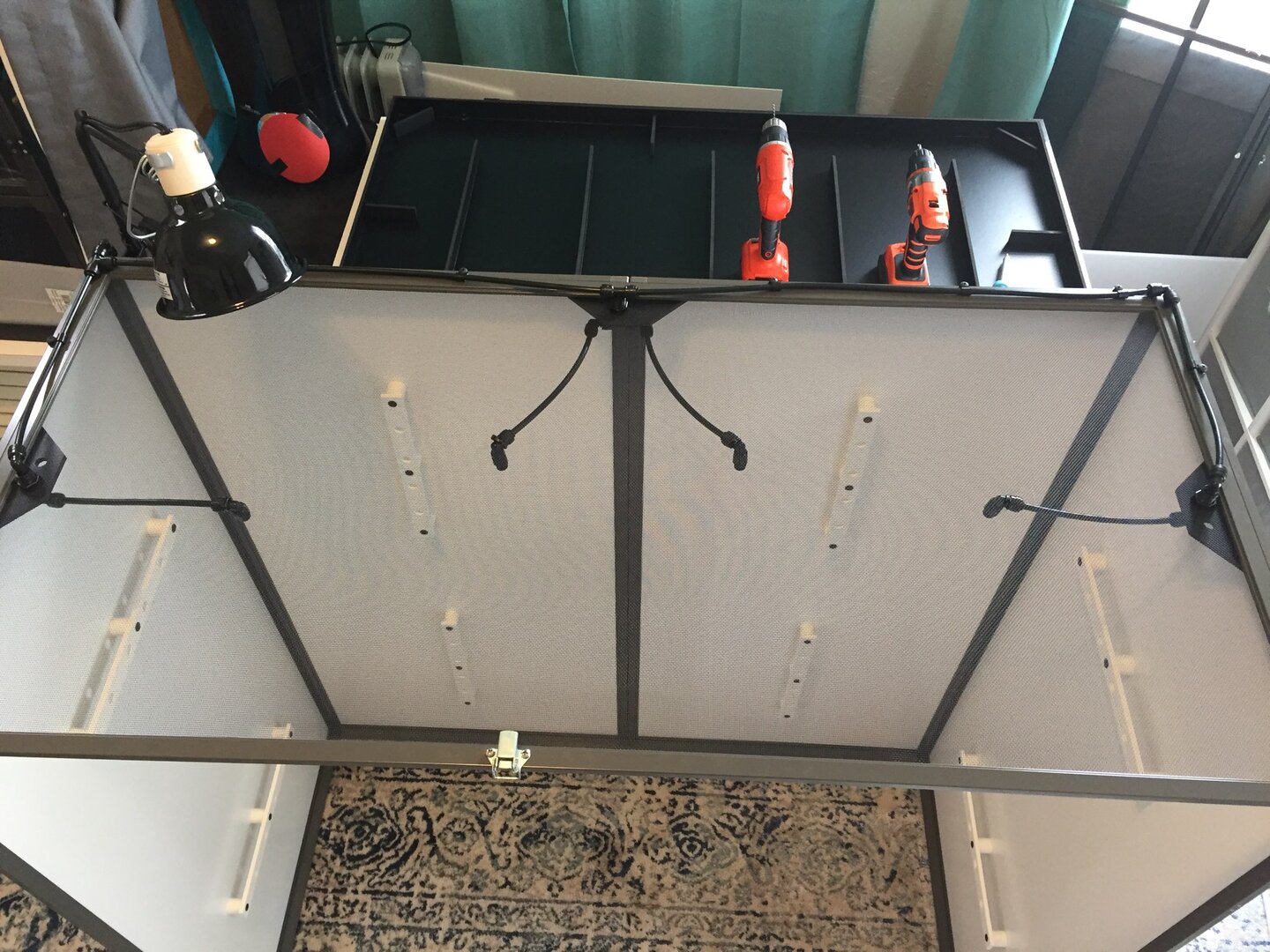 I have not added the doors or the middle panel or service panel... I also have a drop in screen that sits on top of the tray. That is out currently. Once I have branches added, pots placed, and plants dropped in I will add these pieces. I just did not want to risk tearing through the screen of these pieces.
