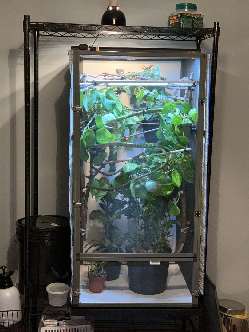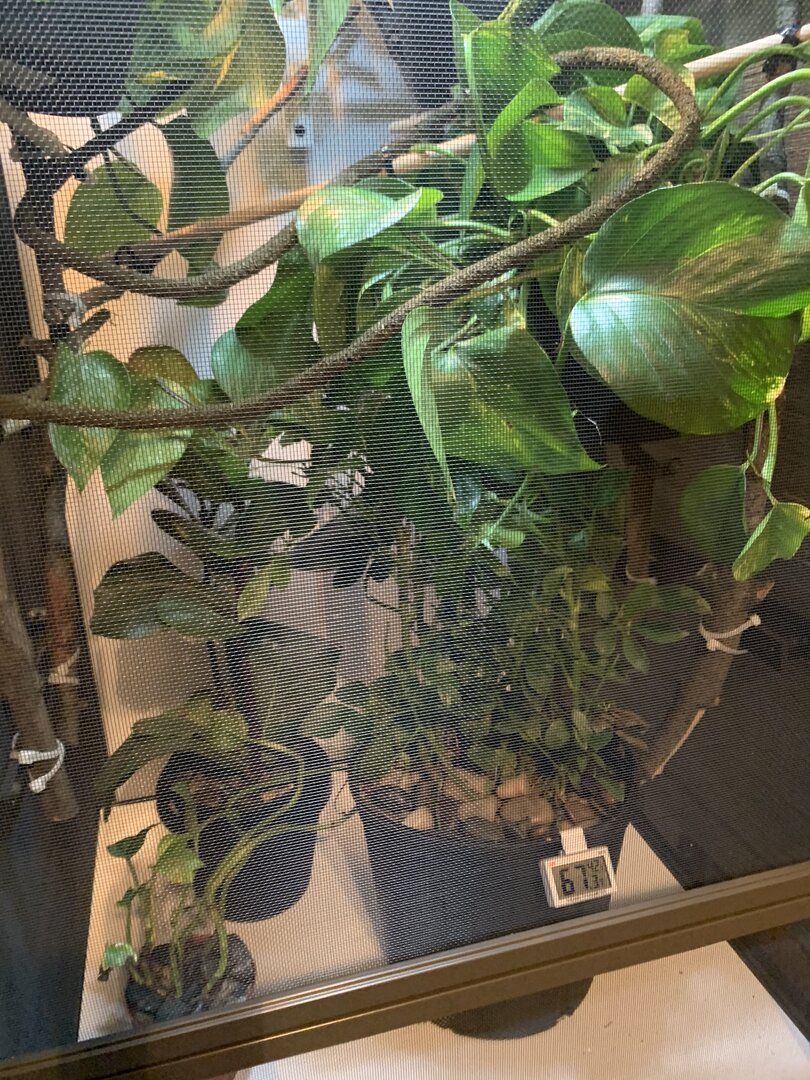 How did I do for Dexter’s new setup? Do I need to switch my T5 HO from a 5.0 bulb to a 10.0? Still need to set up my Mist King but I’ll keep hand misting until then. Wish me luck with my humidity. I live in Cleveland,