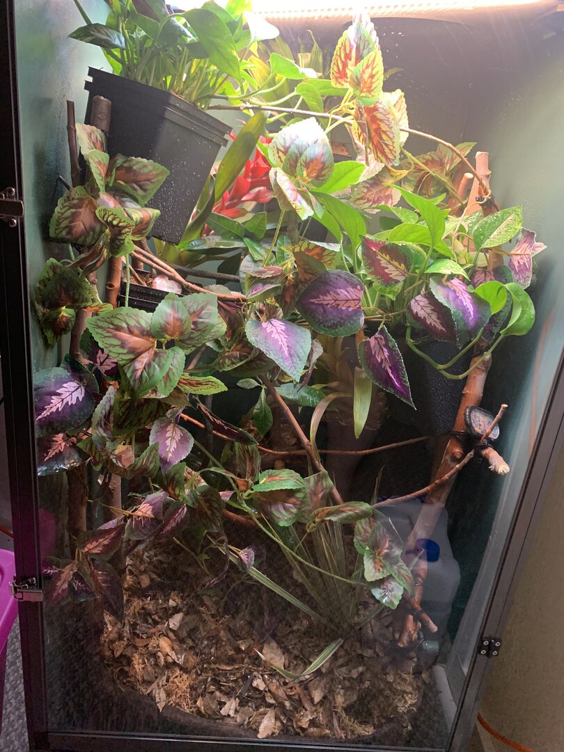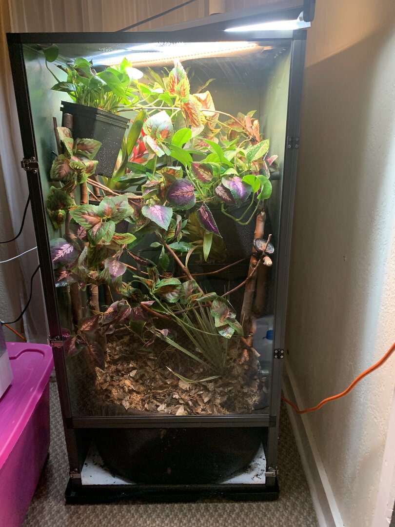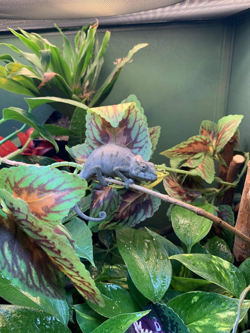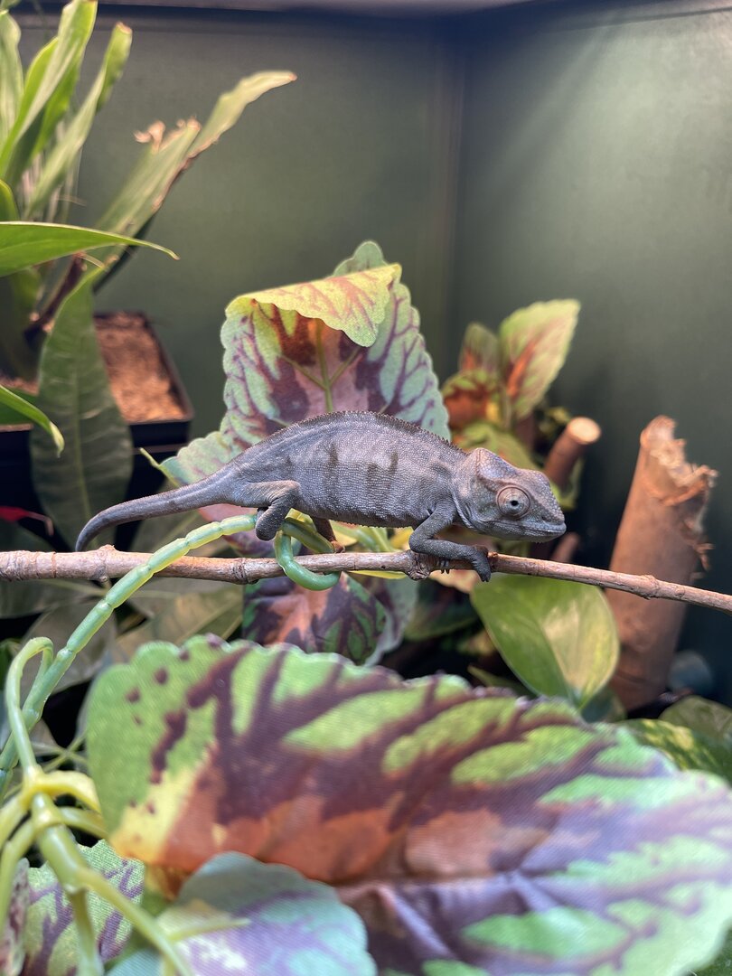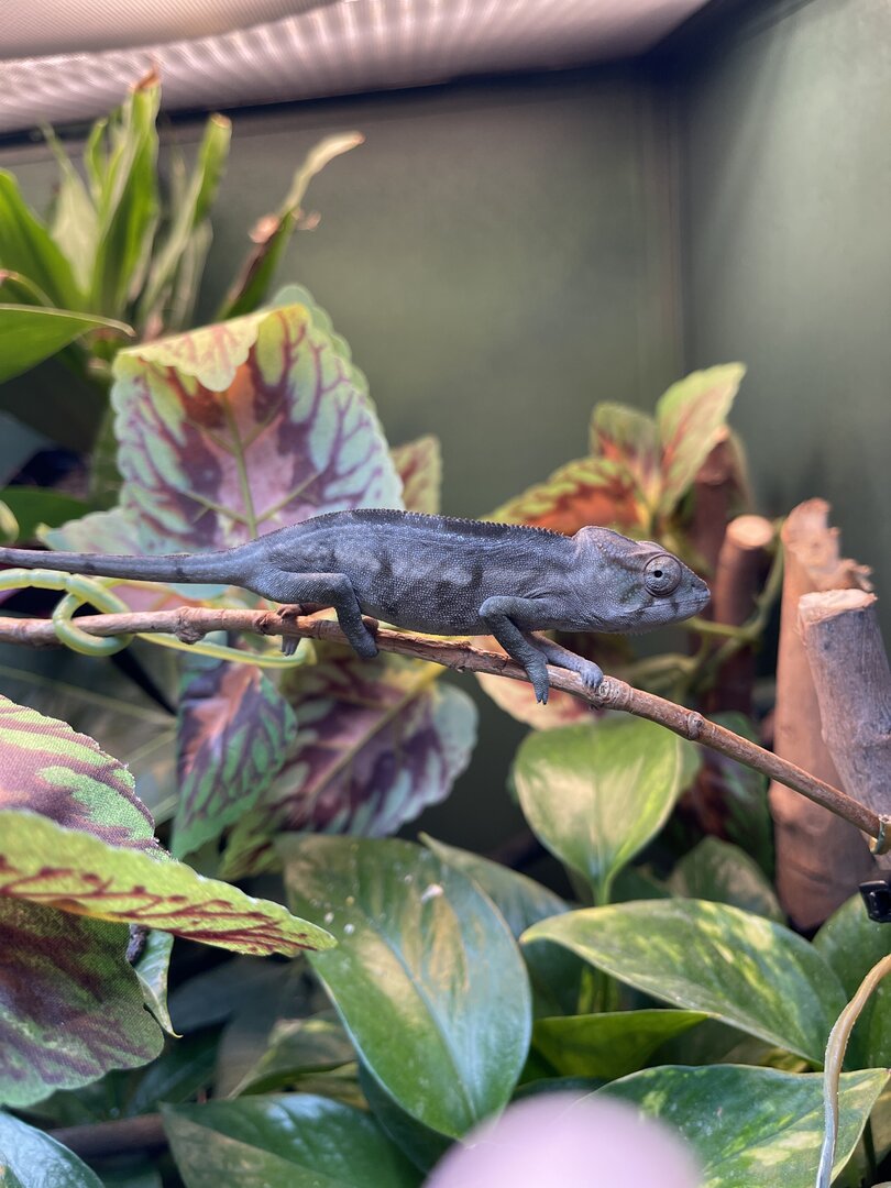 I got my baby panther chameleon named cricket in December he or she could’ve been up to one month old. The initial set up they had was completely wrong and after researching I started to change everything. I got my new cage set up with live plants but there is artificial vines in it as well until my pothos grow. I got a chameleon pouch and terrafirma from biodude in case she is a female she will have a place to climb down to to lay. I do have a mist King pro it just isn’t set up yet so I’m hand misting for 2 minutes 3 times a day. I also have a rack coming in the mail to get the cage off the ground. I am waiting for my isopods pods and springtails to add to the soil. Cricket is hiding in the back of the cage clinging to the money tree and looks super stressed since I put him/her in new enclosure. I triple checked and there is several pathways Cricket can take to get out put he/she doesn’t want to. I don’t handle Cricket and from what I’ve read I should leave Cricket alone but is there anything else I can do to help the transition? I banned kids and dogs from room and only go in the room to periodically check on Cricket but there’s no movement so far it’s been like that for three hours. Should I be worried?