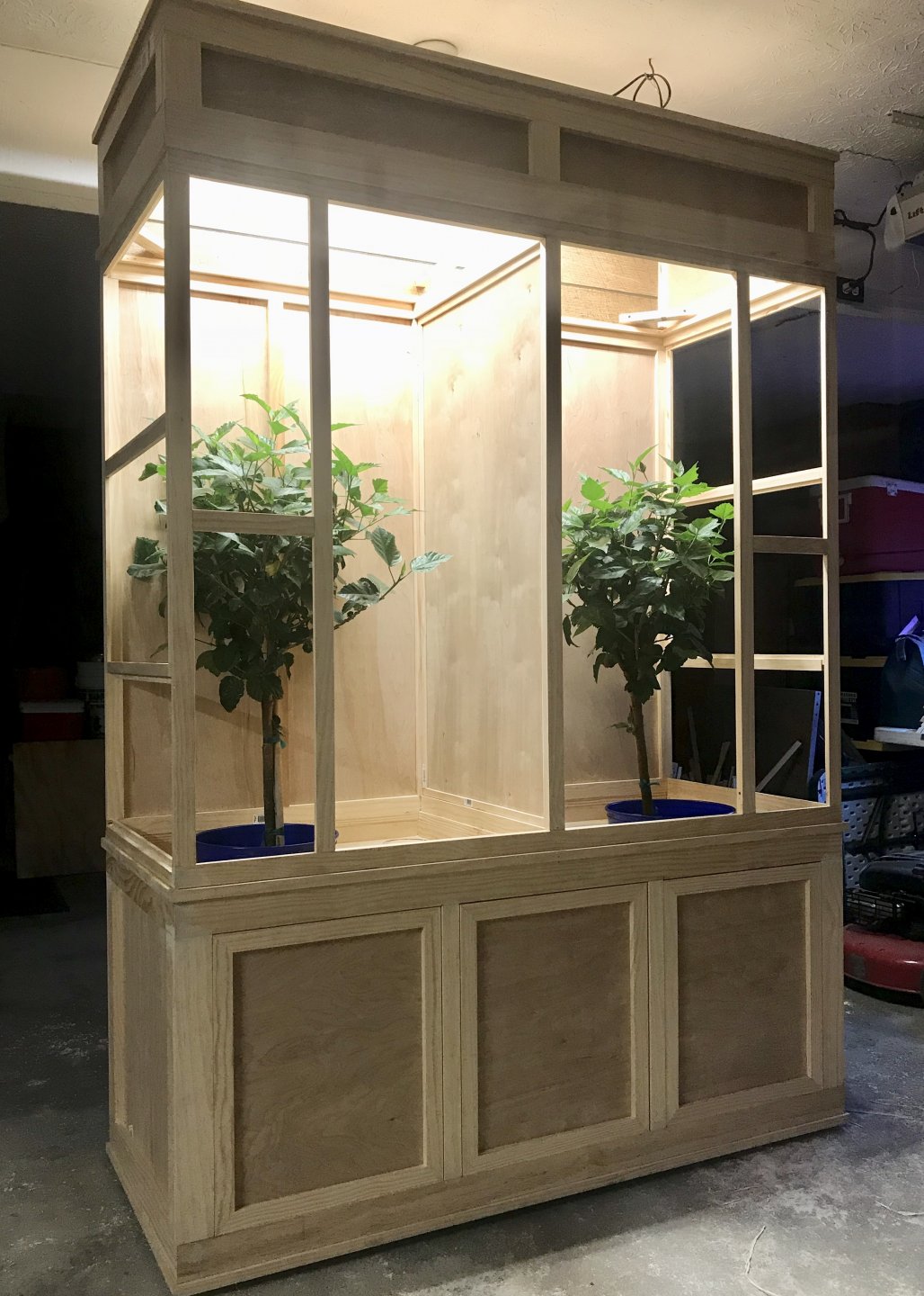 Enclosure is 60” wide 54” tall and 26” deep. It is divided into two 30” wide sections. I’d like to keep a hibiscus as the main plant of each enclosure.