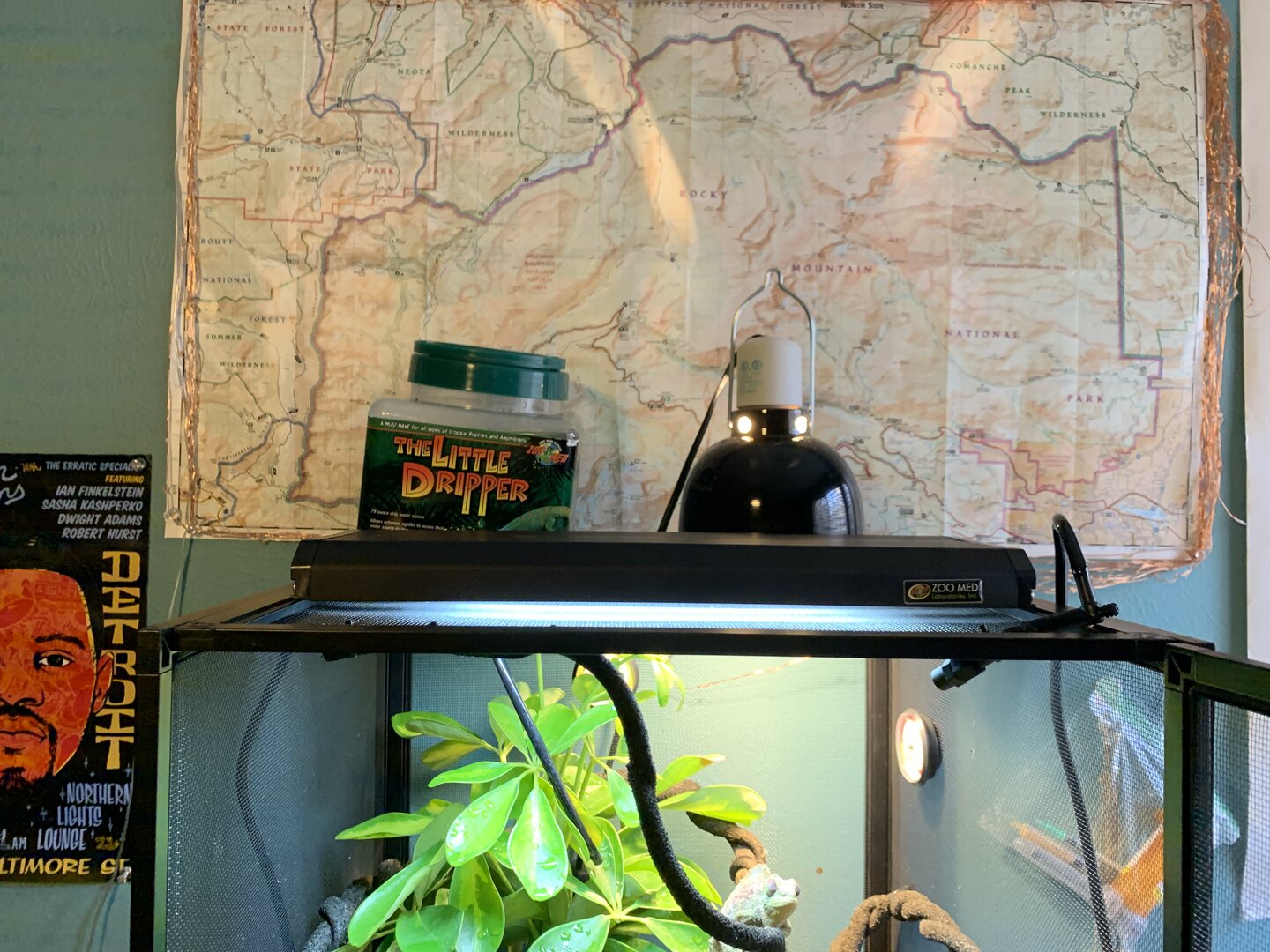 to start off we have the medium size reptibreeze, the linear T5 UVB with a 75 watt basking bulb. no light at night whatsoever.