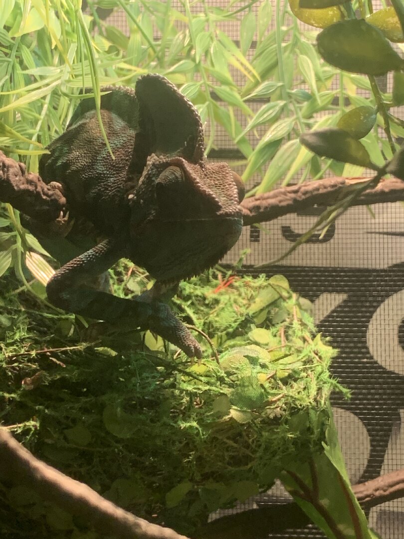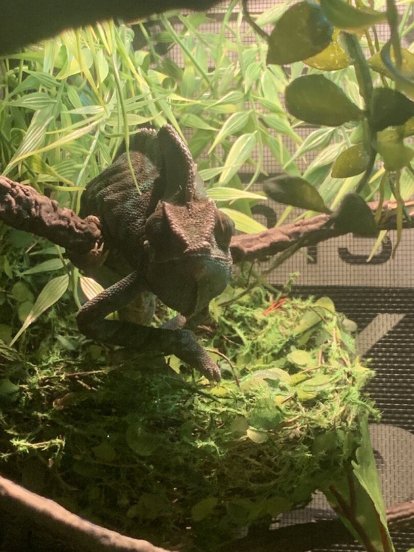 Hi! I am new to this, so please don’t be too harsh! I have wanted a chameleon for quite some time. A student of mine was rehoming hers and I got him. I have had him about a month and have done research previously and I continue to do so. I know his cage is too small and I have a larger one in the works. There were some other issues that I deemed to be more important that I was taking care of first. He was kept with a compact uvb bulb, did not have supplements and was fed mostly meal worms. I have changed all of this already.