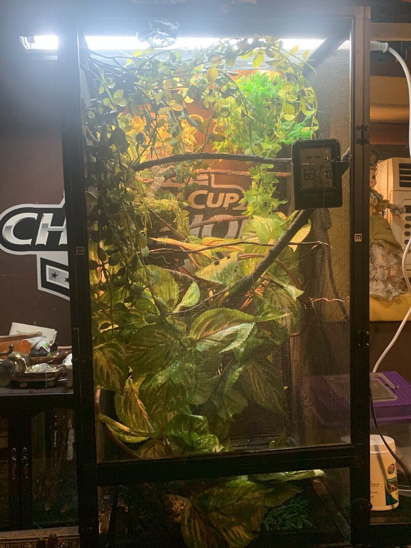 - Humidity - this on place where I know I’m having trouble. Humidity stays around 30% I have added plastic to the sides of the cage to help at night but it doesn’t seem to be doing much.