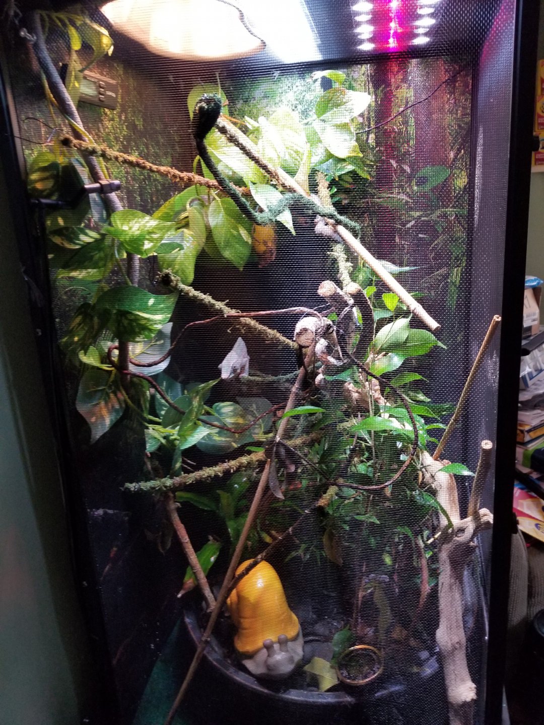 Ive added a large pot so cover all plants. Now its 10x easier to spot clean still work in progress. Cant wait to upgrade his enclosure to bigger size when he grows View attachment 212443