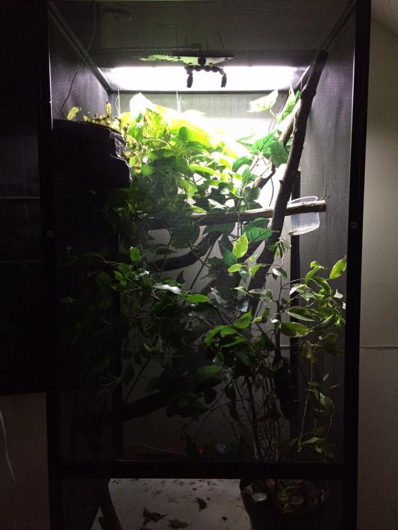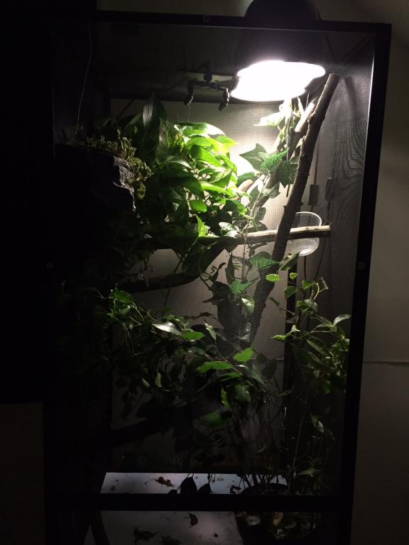 I went with the quad fixture with 12% Arcadia bulb, two 6.5K daylight bulbs and the LED moon light. Pictures below should show before installation, after and one with the LED lights. Thanks Todd!