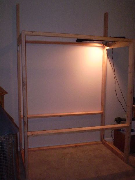 . Got busy and built this 6'x5'x3' enclosure. The back 2x4s (7'ft) will be the top of the slanted roof which will be bamboo like the back wall of the enclosure.