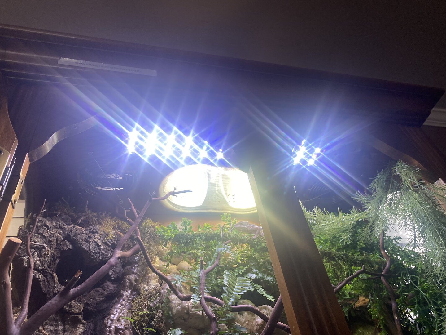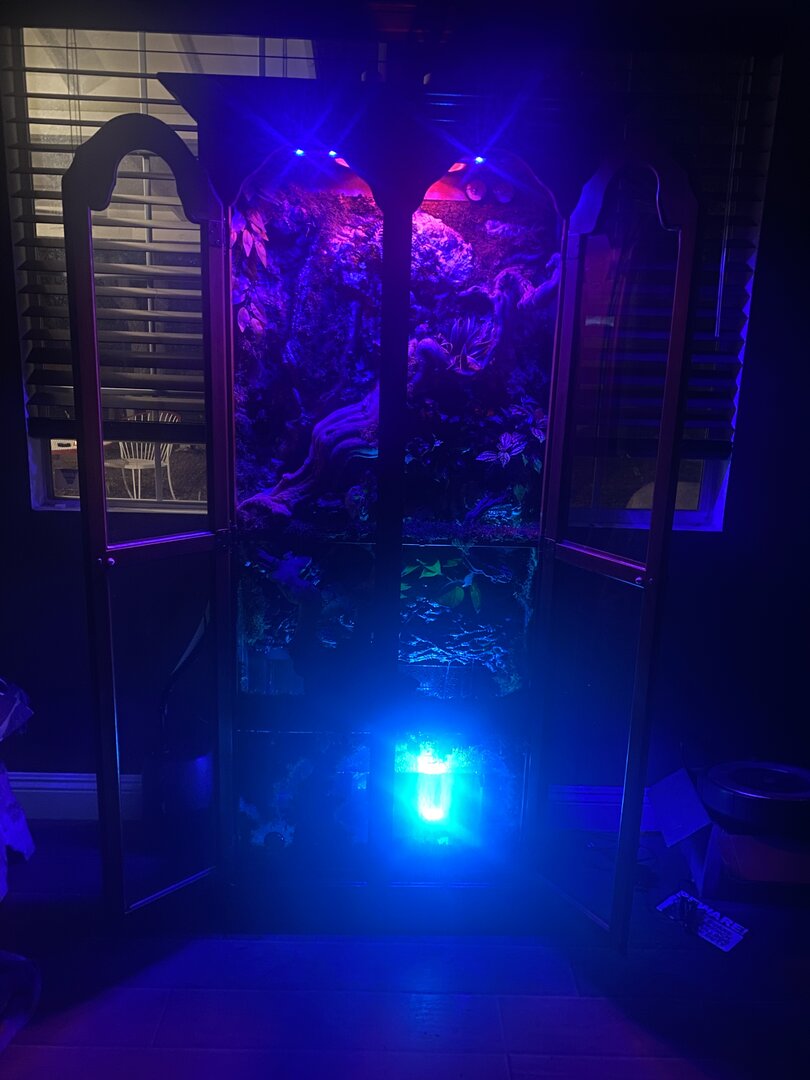 • Lighting - Twindome Acadia 5.0 uvb (6%) 5 inches above basking site , 24 inch reptile LED . 7 to 7 heat lamp 6 to eight