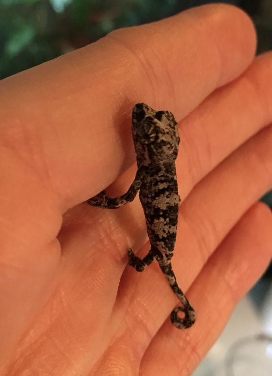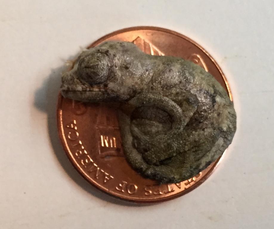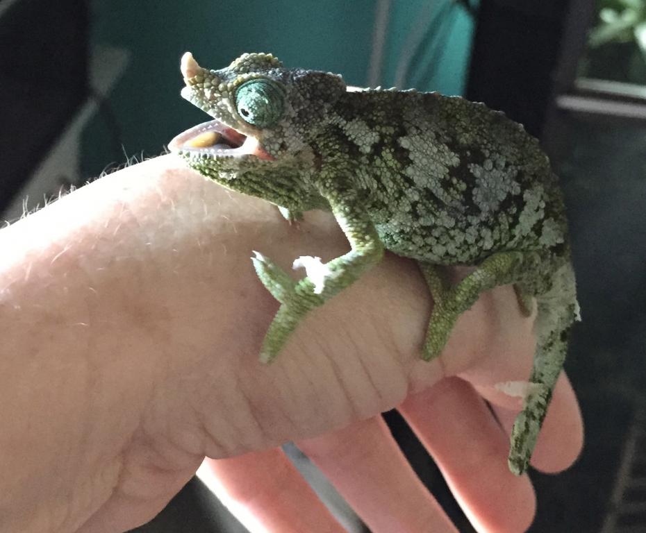 Today I welcomed my second batch of babies in less than a month. On July 23rd my Werner's gave birth to 8 babies (I didn't even know she was pregnant). And this morning, one of my gravid Mt. Meru Dwarf Jackson's gave birth to 5 live babies and one "stillborn." I knew she was gravid because I asked for a gravid female and she arrived just last month. She is very tiny and from the length of her horn, I'd say she is very young. I have a Mt. Meru that was born last November and her horn is about 3 times as long as this mama's is. Anyway, I think the "stillborn" would have made it with a little help if I had been present when they were born. I found her attached to the side of the screen enclosure still in her sack. I will try to attach a pic of one of the babies, the stillborn (because, though sad, it is fascinating to see), and a pic of the mom. These babies are already as big or bigger than the Werner's. They are very active and alert.