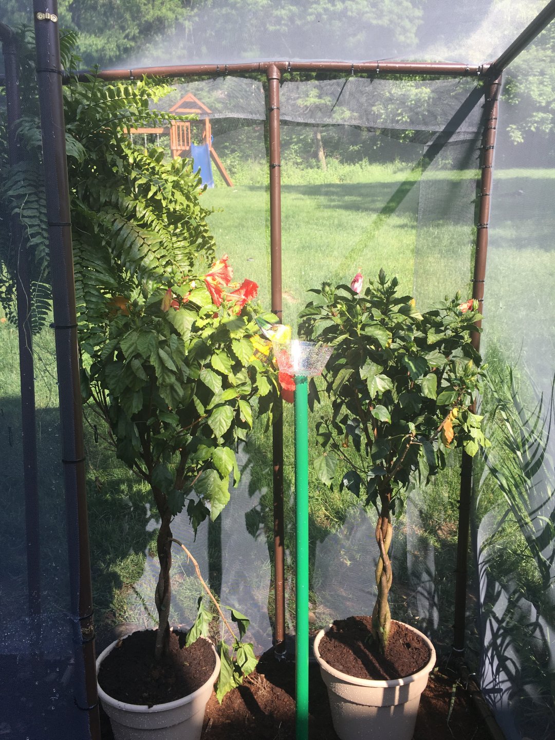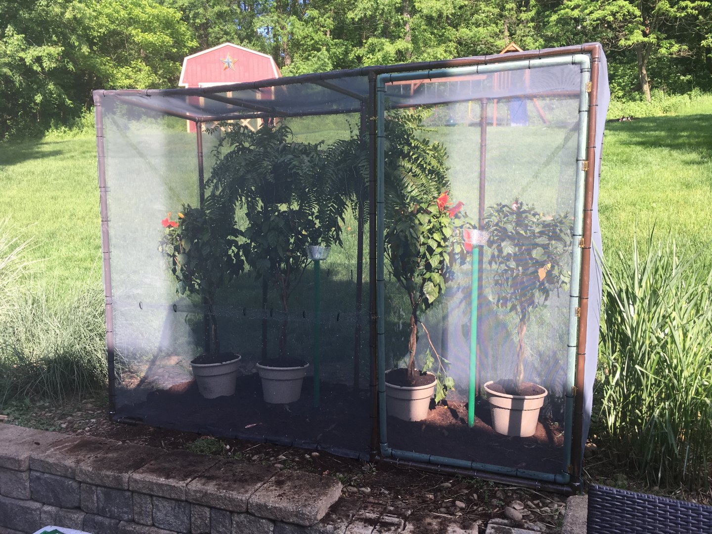 Thanks - I dug the poles pretty deep into the ground for the feeding cups. Figured that might give me a little control over feeding while they're in there. Of course there are plenty of native bugs that seem to have no problem finding their way into the enclosure!