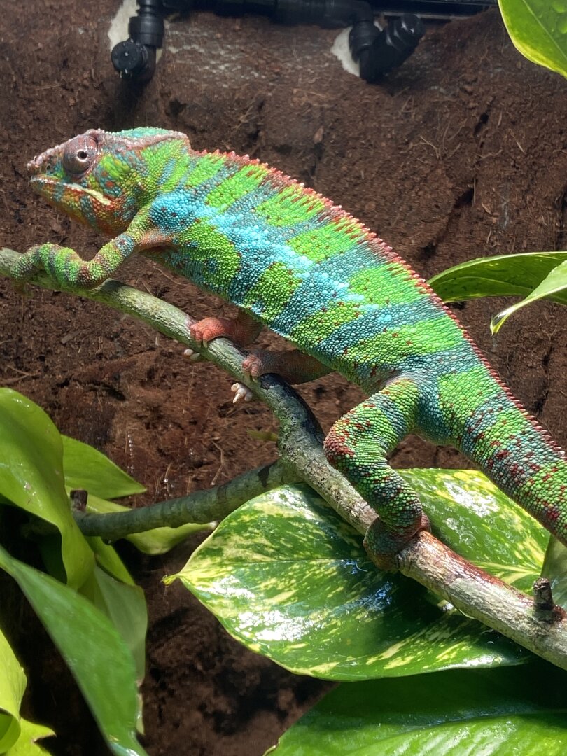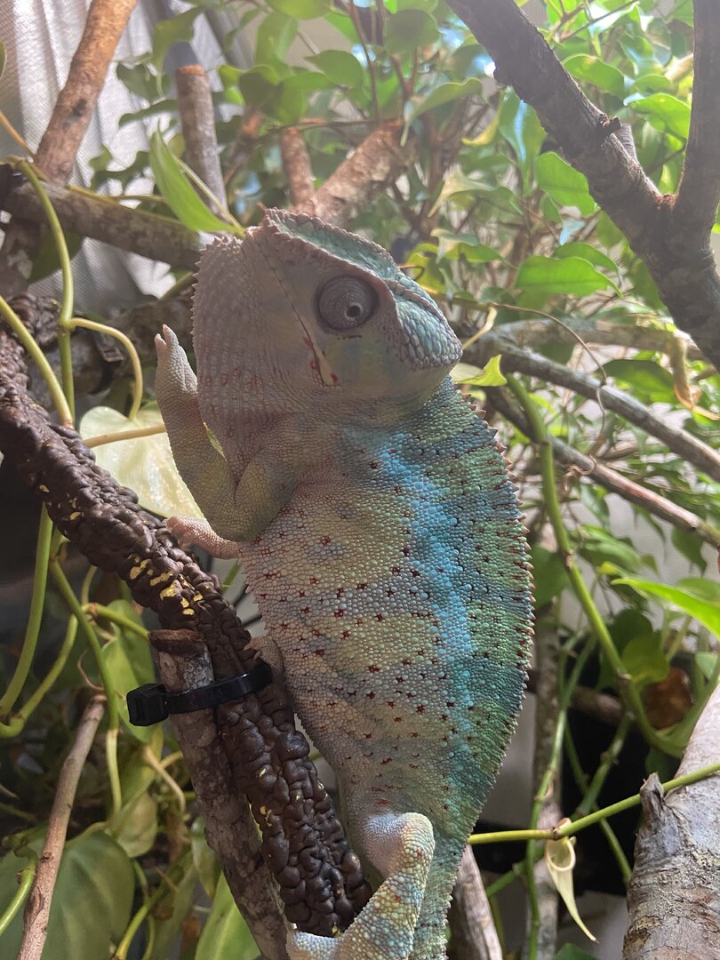 I have a 10 month old male panther chameleon and lately he's been very very pale. He is sometimes very active, and other days (like the past two) has been lethargic. This seems to happen on and off. On the busy days he is all over and eats a good deal, on his lethargic days I don't see him move to his basking spot or really eat at all, and he lounges in more hidden places with his head resting. I know that panther chameleons sometimes go through weird colour periods, where they are more faded than other times but are fine, so I wanted to just get your input on that and if he is just having a muted period as well as if his active to less active habits are okay?