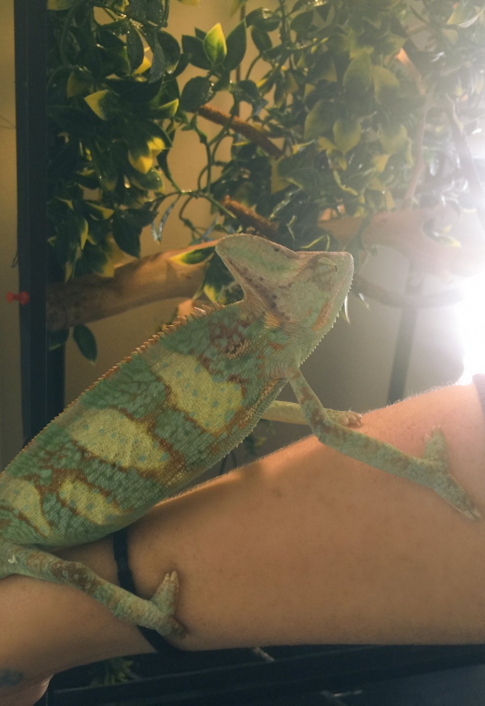 Hello, I will be bringing home a juvenile (5months) veiled hopefully tomorrow if I can get his set up where it should be. This will be my first chameleon. I have a 24x24x48 screen cage, filled with artificial plants, vines and branches, and a bare bottom. I have a dripper set up and will be hand misting for now. I want to make sure the temp and humidity levels are where they should be before I bring him home. I have a 100watt Exo Terra solar glow bulb, however the basking temp was not reaching 85-95 degrees, so i purchased a 100watt ceramic infrared bulb to add to with the other to bring the temp up..... this was suggested by the person i bought him from. I have measured the temps throughout the day, and the basking temp seems to vary a lot, between 80-90... and the humidity from 40-70%. I am not sure what i am doing wrong. I would like to know how others achieve the basking temp consistantly of 85-95 and what watt you are using, as well as how to maintain the humidity level throughout the day....or do they even need a constant level of humidity? Should i be misting the cage longer, or do i need to add live plants or substrate to create humidity? Also, how will i know if I bring him home and he is too hot, too cold or not hydrated enough? Thank you!